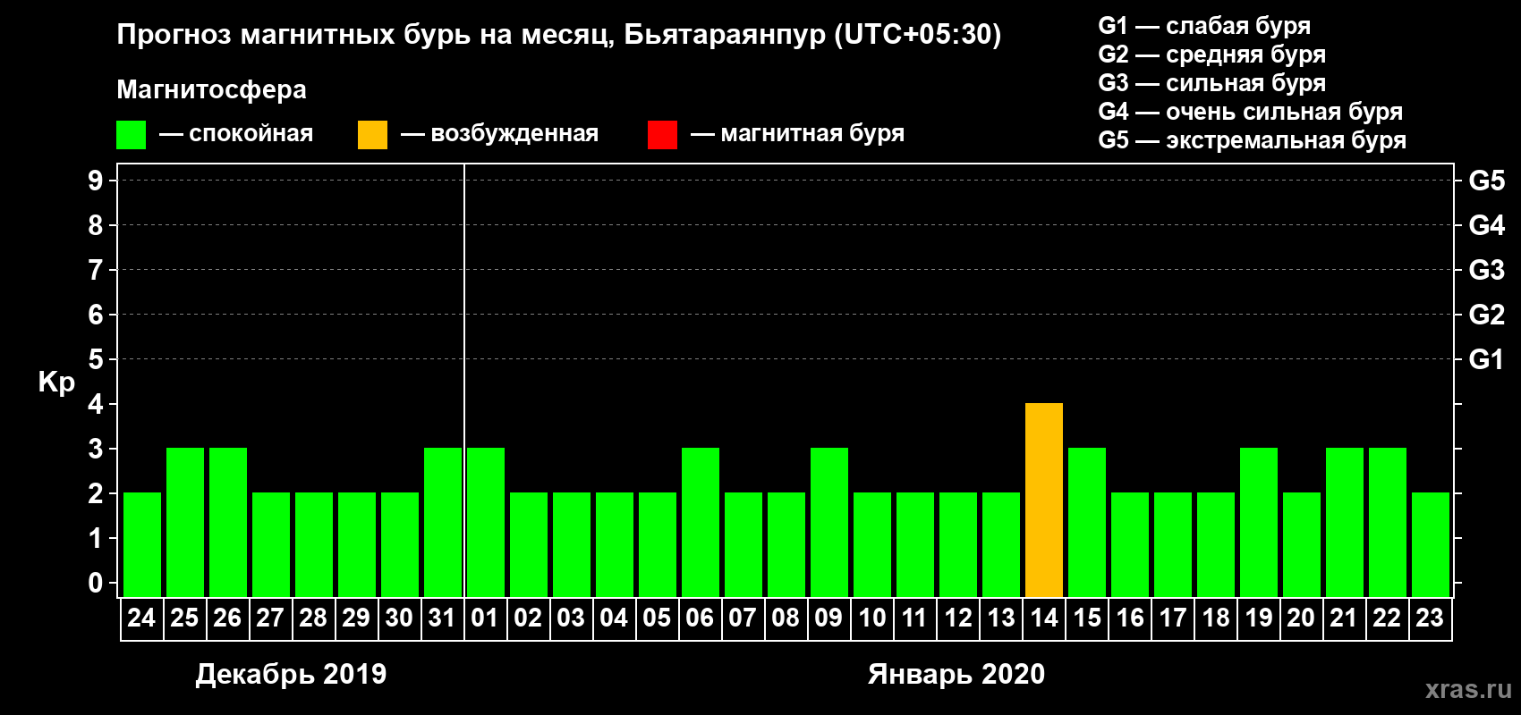 Прогноз магнитных бурь в Бьятараянпуре — 24 декабря 2019 года