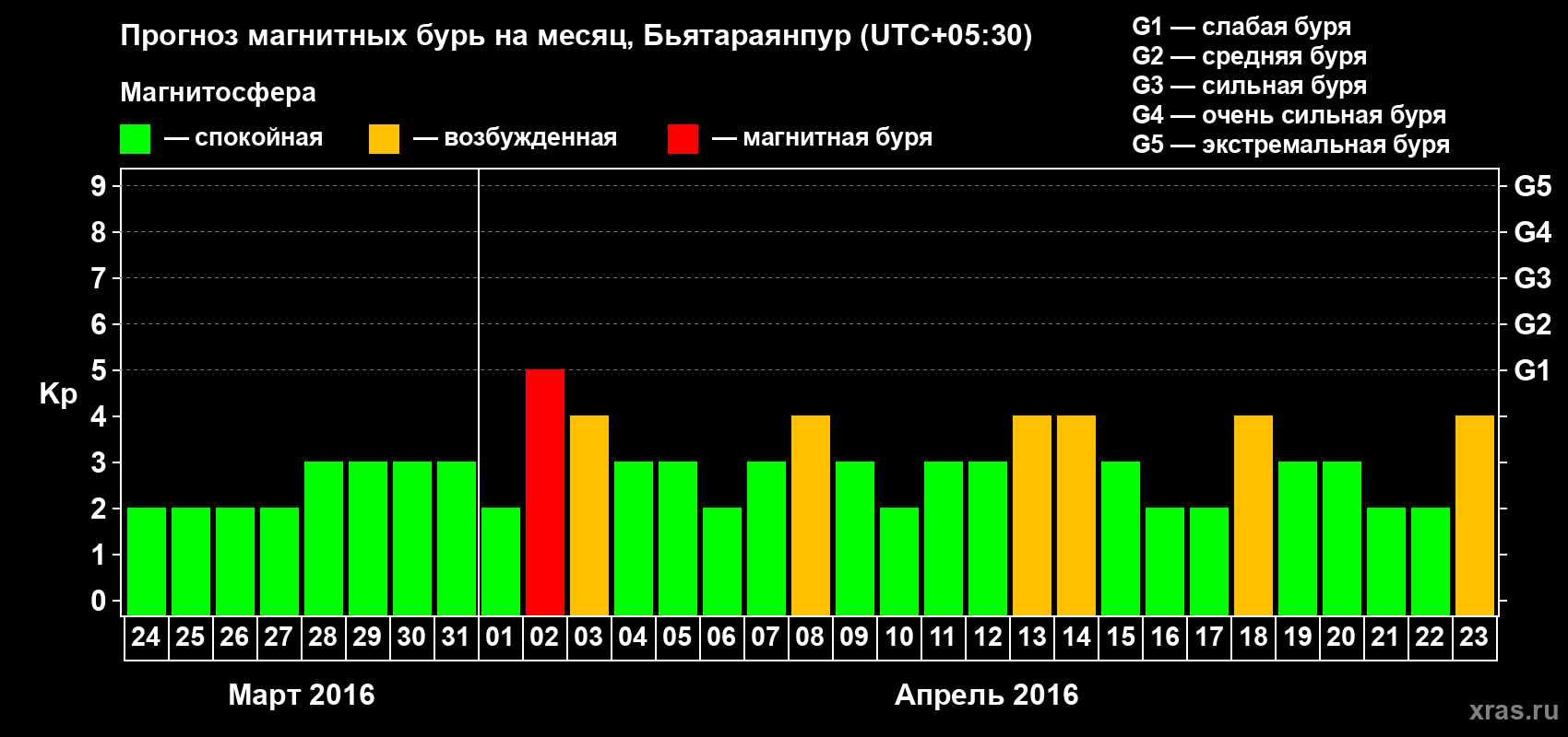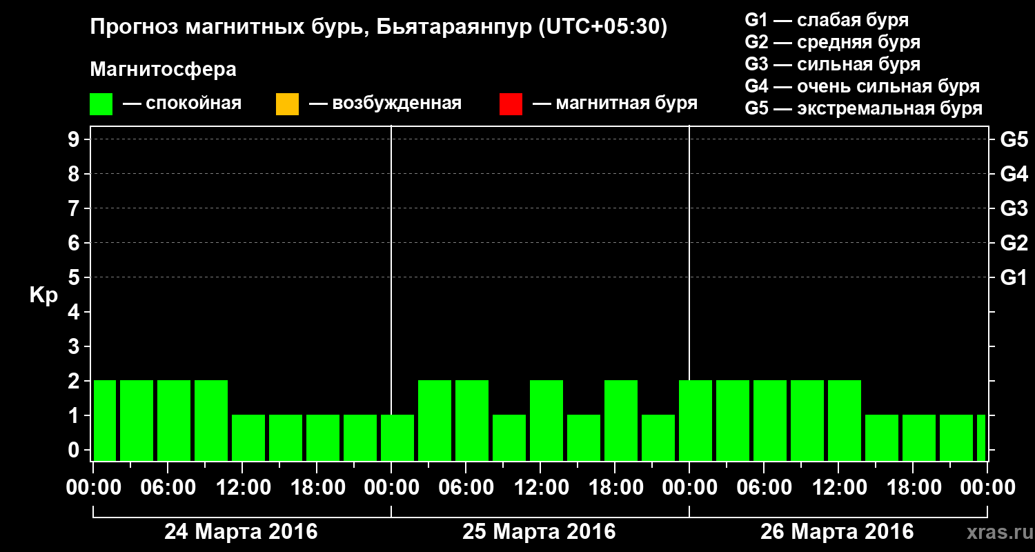 Прогноз магнитных бурь в Бьятараянпуре — 24 марта 2016 года