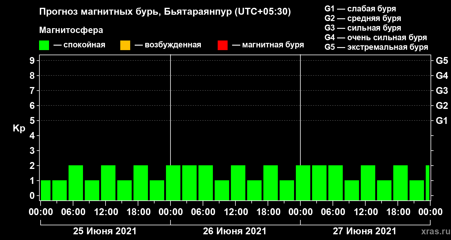 Прогноз магнитных бурь в Бьятараянпуре — 25 июня 2021 года