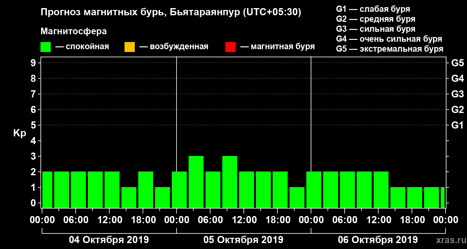 Прогноз магнитных бурь в Бьятараянпуре — 4 октября 2019 года