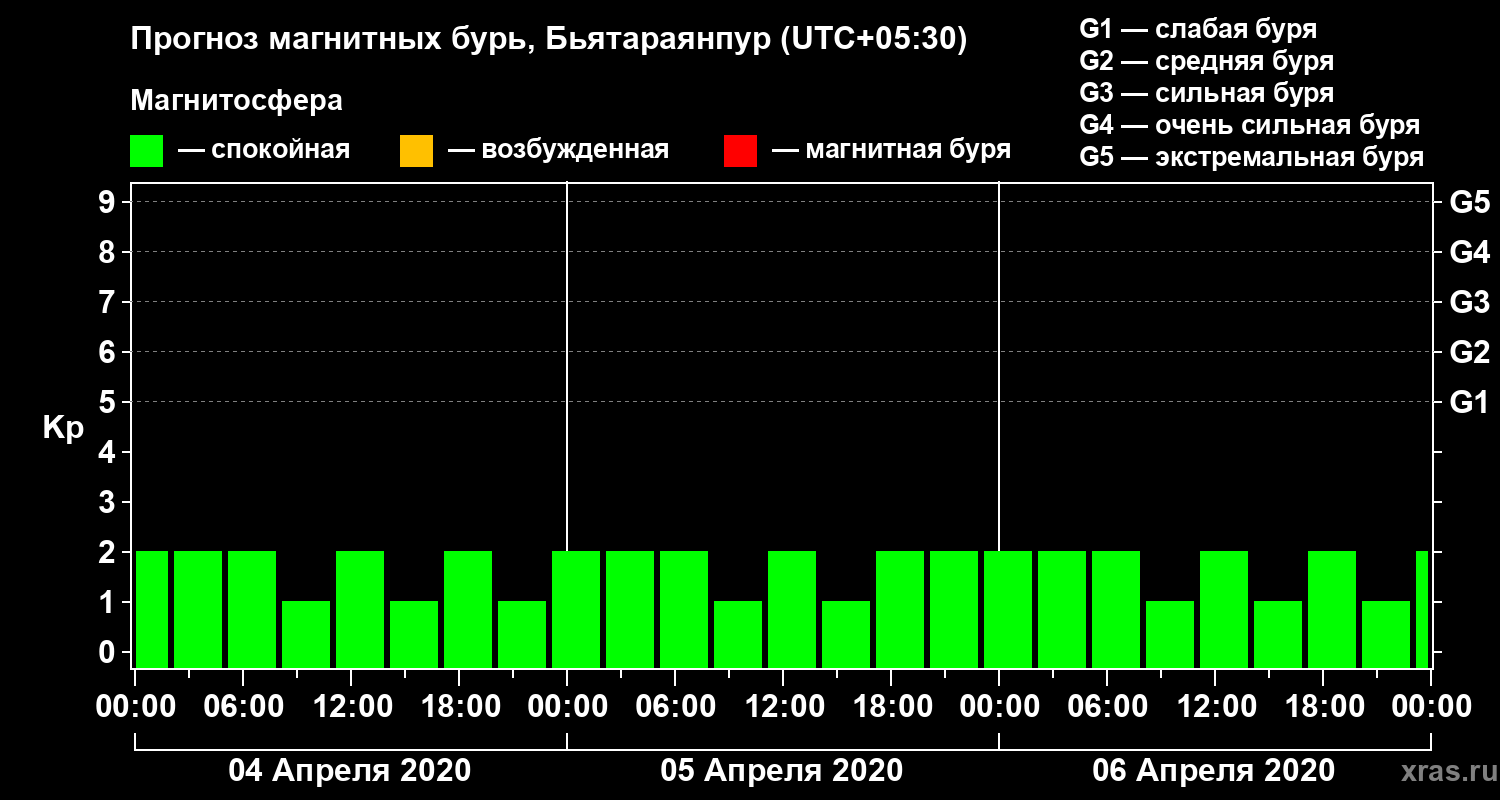 Прогноз магнитных бурь в Бьятараянпуре — 4 апреля 2020 года