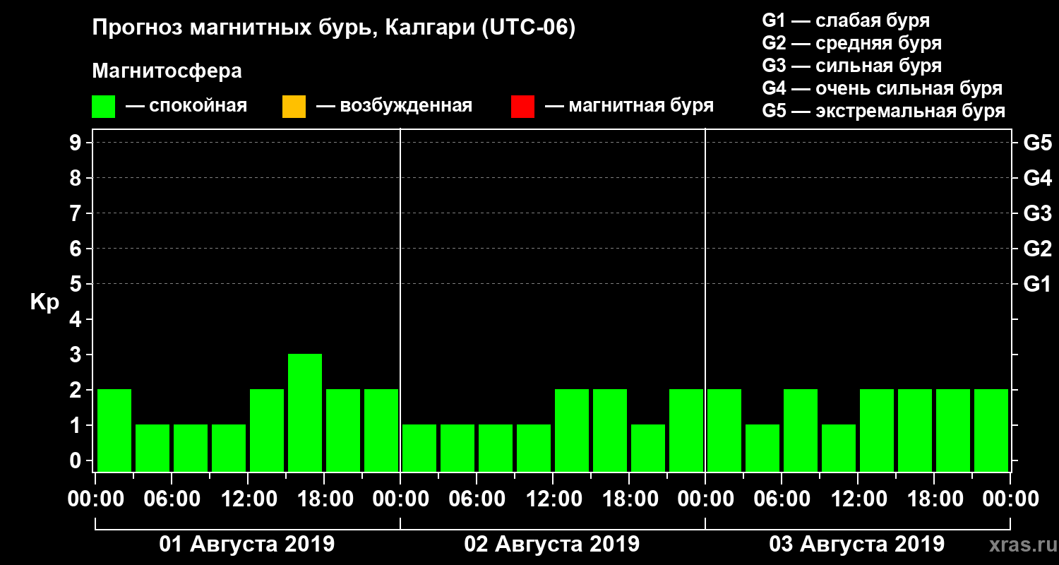 Прогноз магнитных бурь Калгари на 1 августа 2019 года