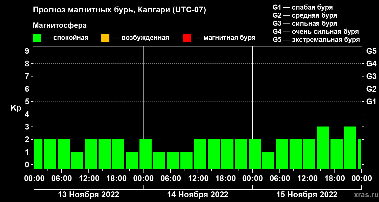 Прогноз магнитных бурь Калгари на 13 ноября 2022 года