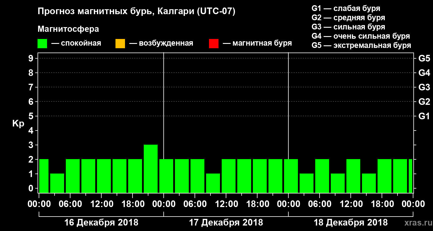 Прогноз магнитных бурь Калгари на 16 декабря 2018 года