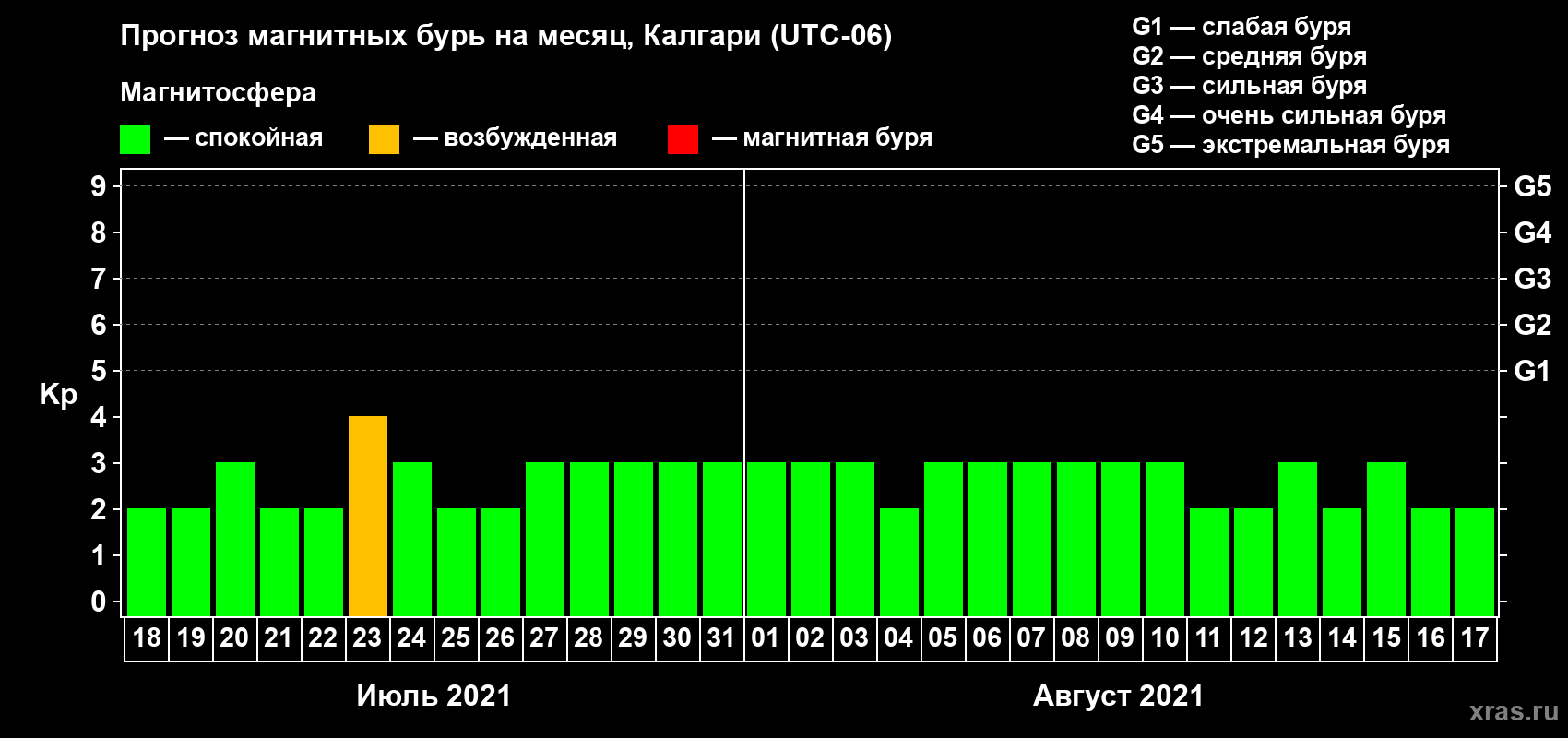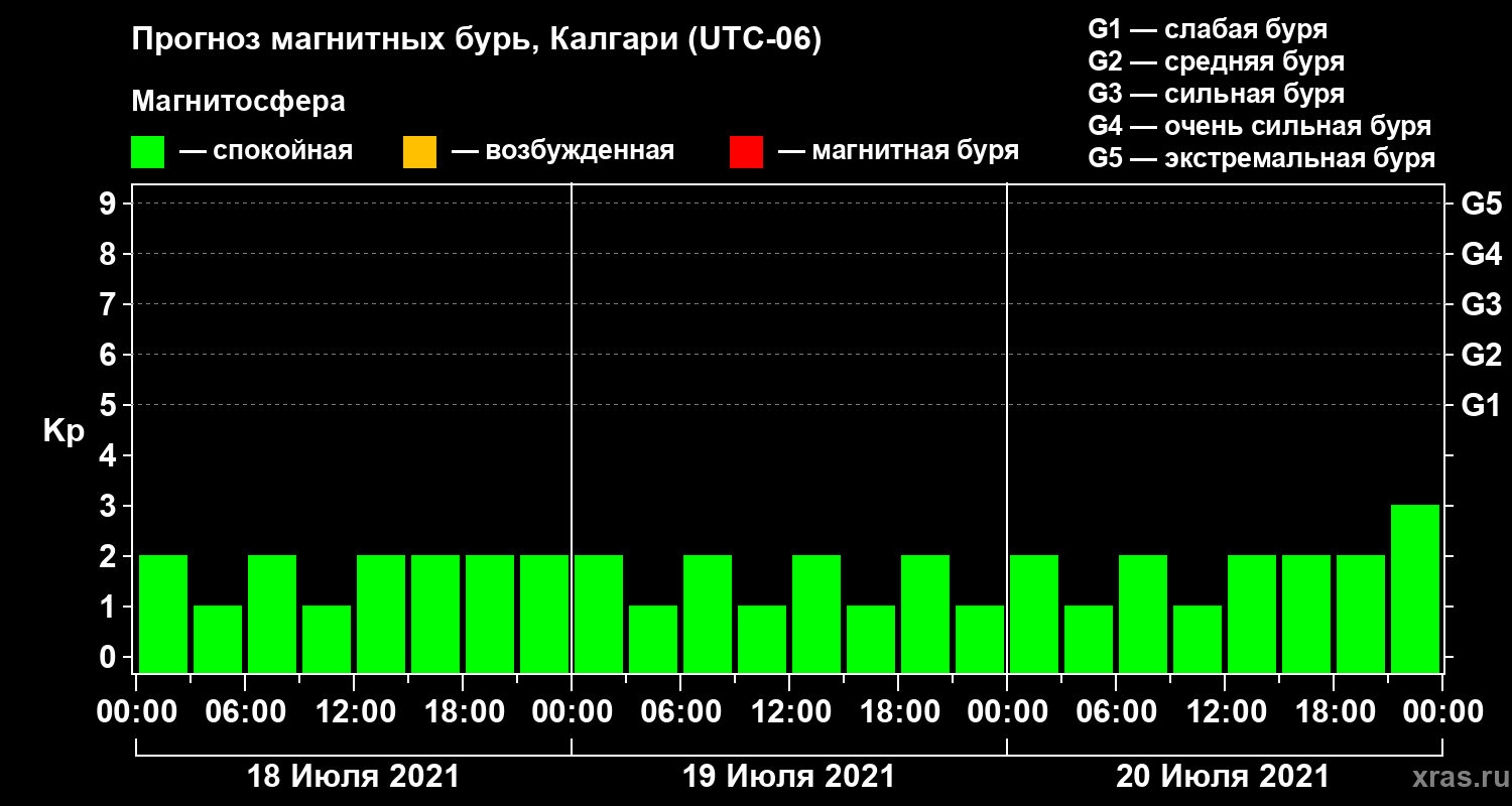 Прогноз магнитных бурь Калгари на 18 июля 2021 года