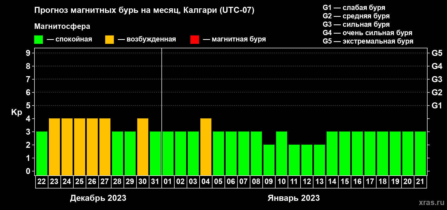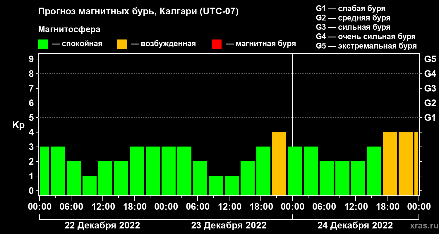 Прогноз магнитных бурь Калгари на 22 декабря 2022 года