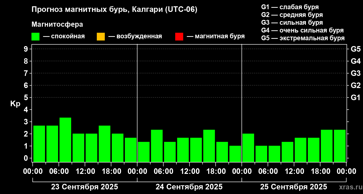 Прогноз магнитных бурь Калгари — 23 сентября 2025 года
