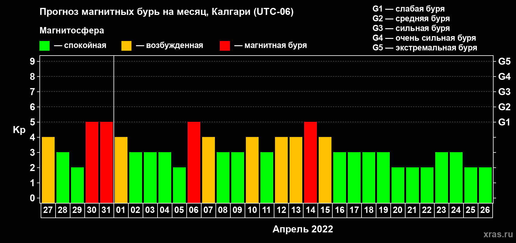 Прогноз магнитных бурь Калгари — 27 марта 2022 года