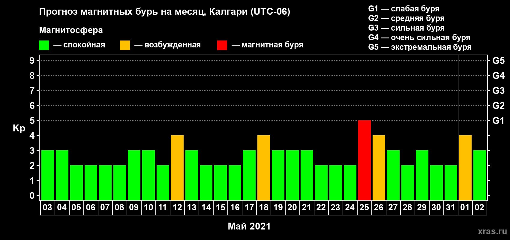 Прогноз магнитных бурь Калгари на 3 мая 2021 года