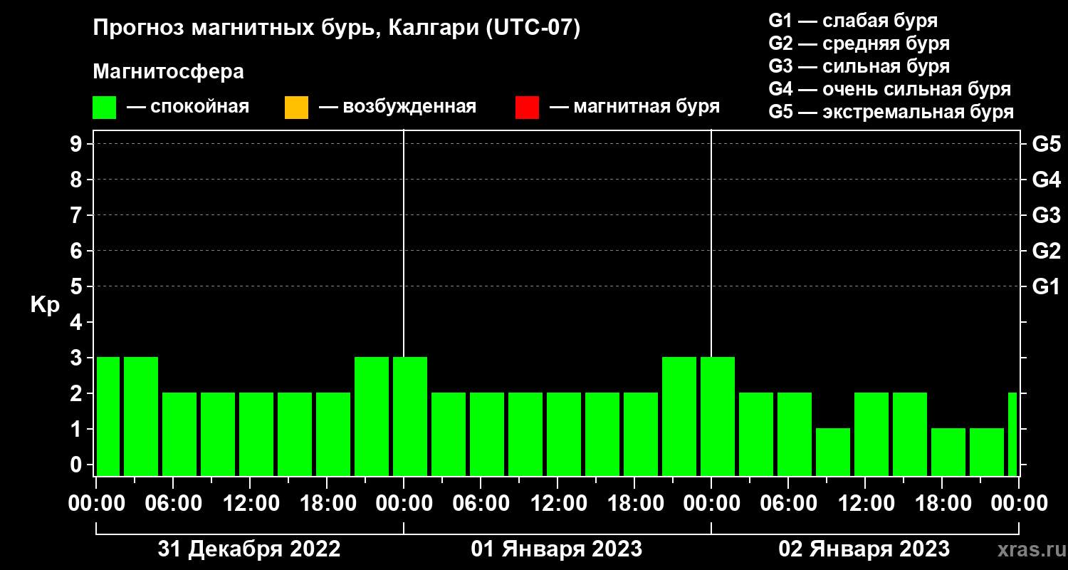 Прогноз магнитных бурь Калгари на 31 декабря 2022 года