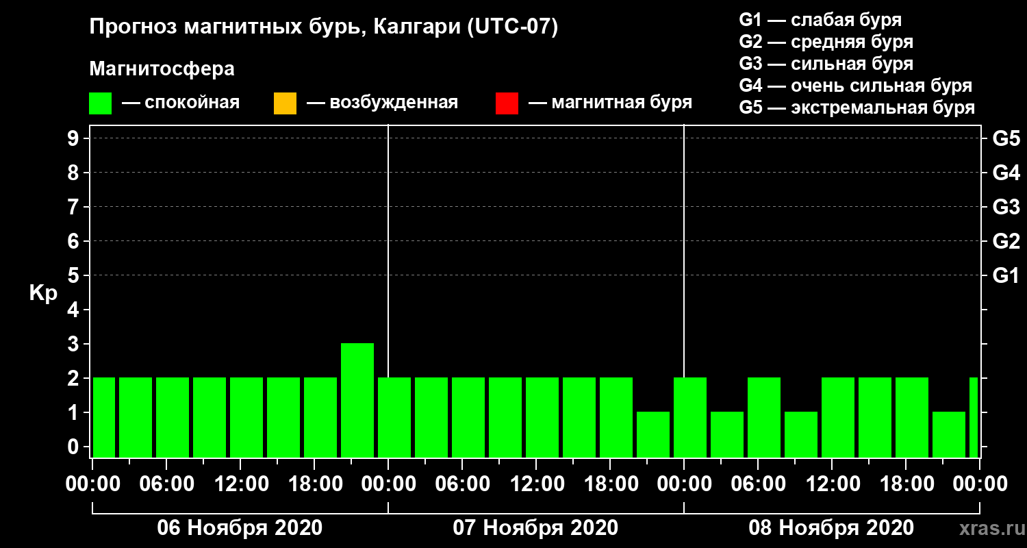 Прогноз магнитных бурь Калгари на 6 ноября 2020 года