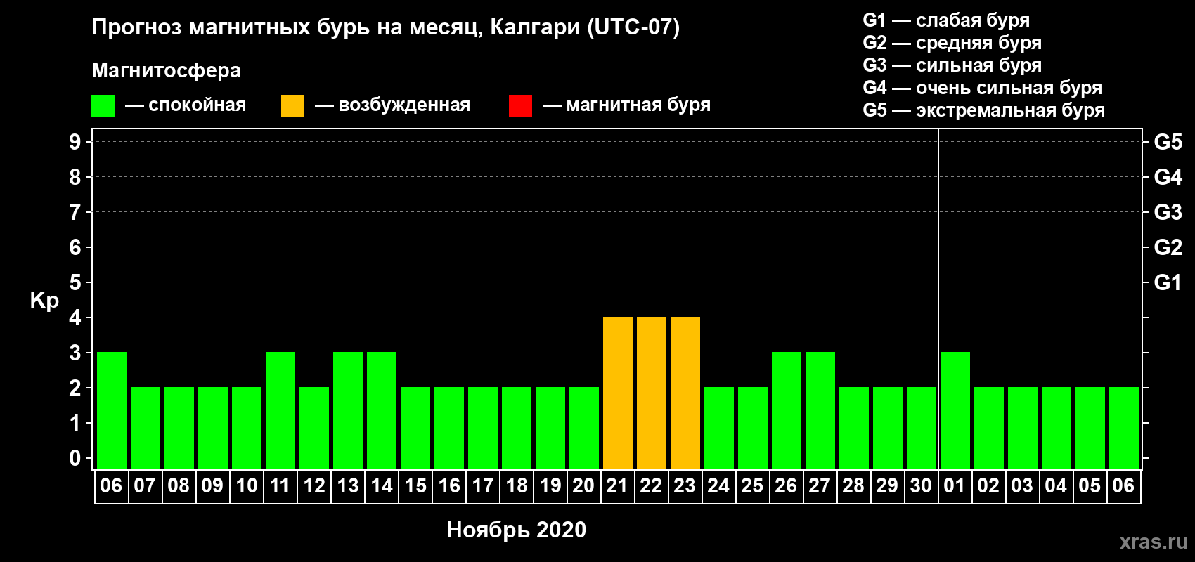Прогноз магнитных бурь Калгари — 6 ноября 2020 года