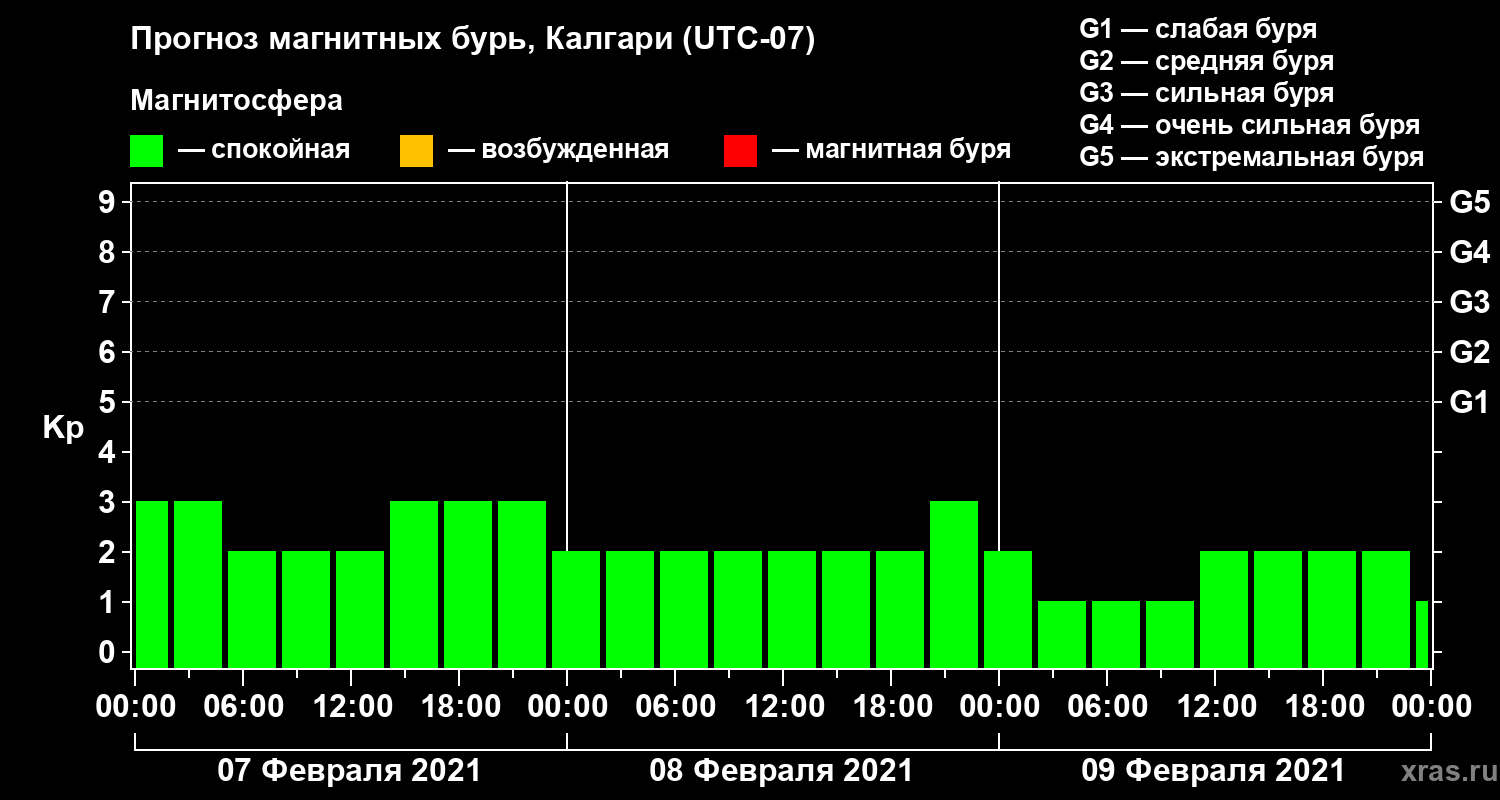 Прогноз магнитных бурь Калгари на 7 февраля 2021 года