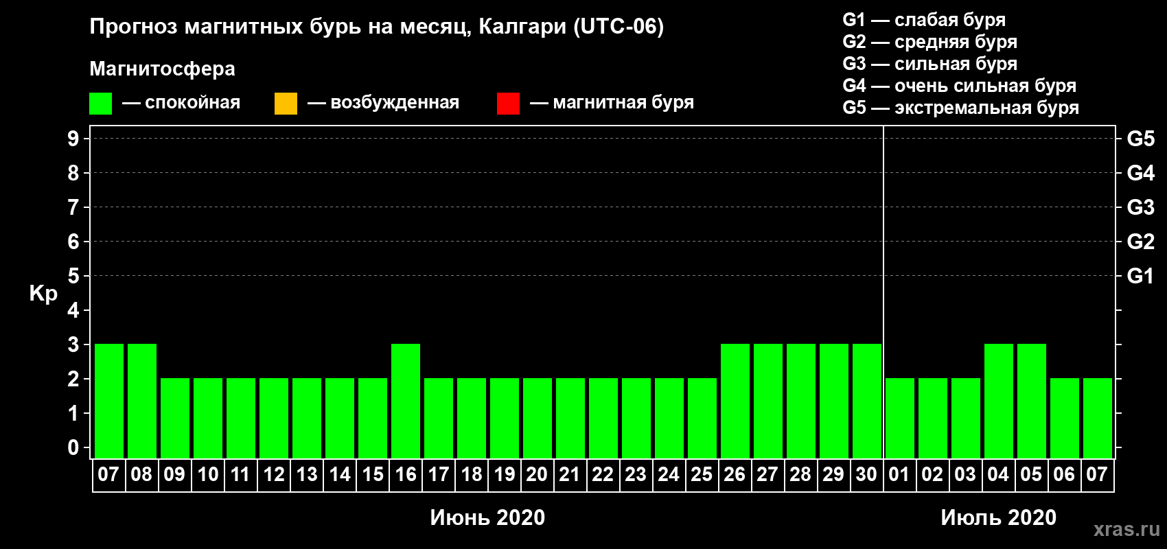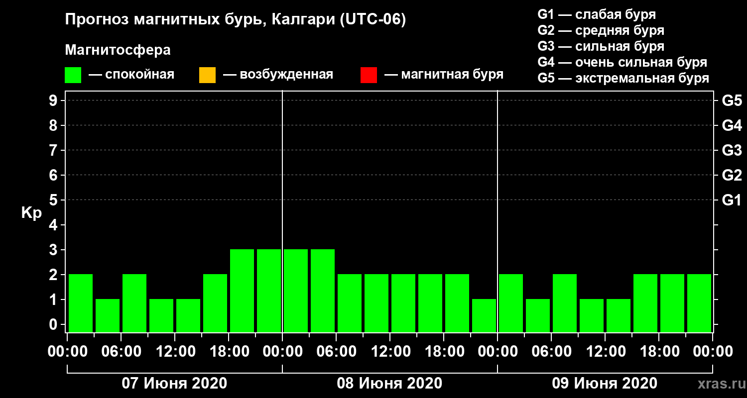 Прогноз магнитных бурь Калгари на 7 июня 2020 года