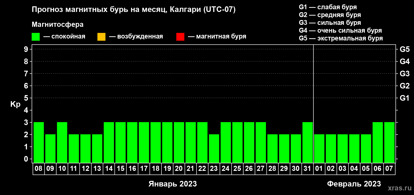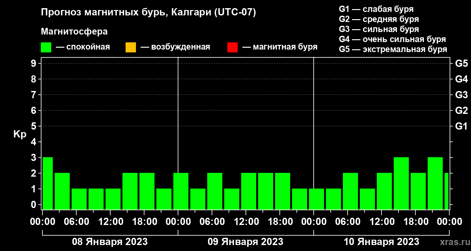 Прогноз магнитных бурь Калгари на 8 января 2023 года