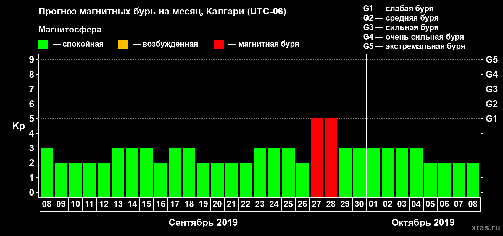 Прогноз магнитных бурь Калгари на 8 сентября 2019 года