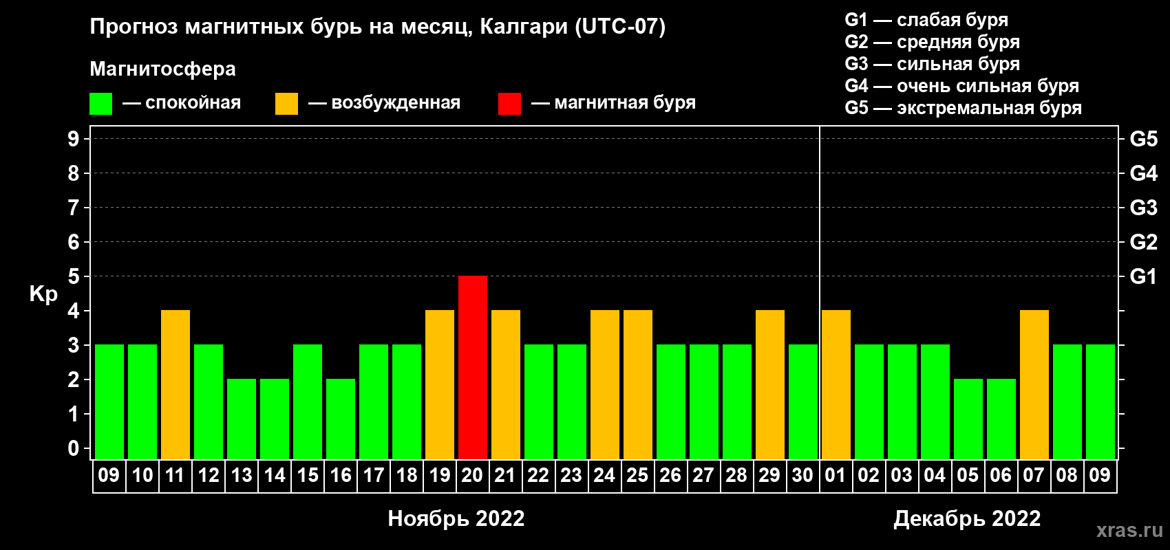 Прогноз магнитных бурь Калгари на 9 ноября 2022 года