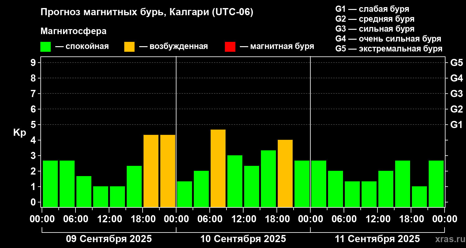 Прогноз магнитных бурь Калгари на 9 сентября 2025 года