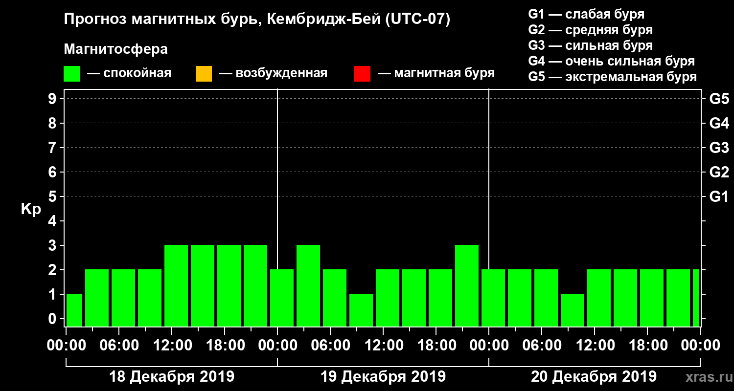 Прогноз магнитных бурь в Кембридж-Бейе — 18 декабря 2019 года