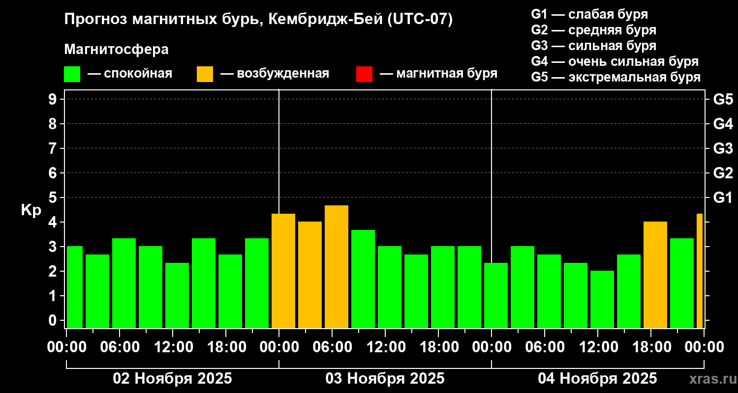 Прогноз магнитных бурь в Кембридж-Бейе — 2 ноября 2025 года