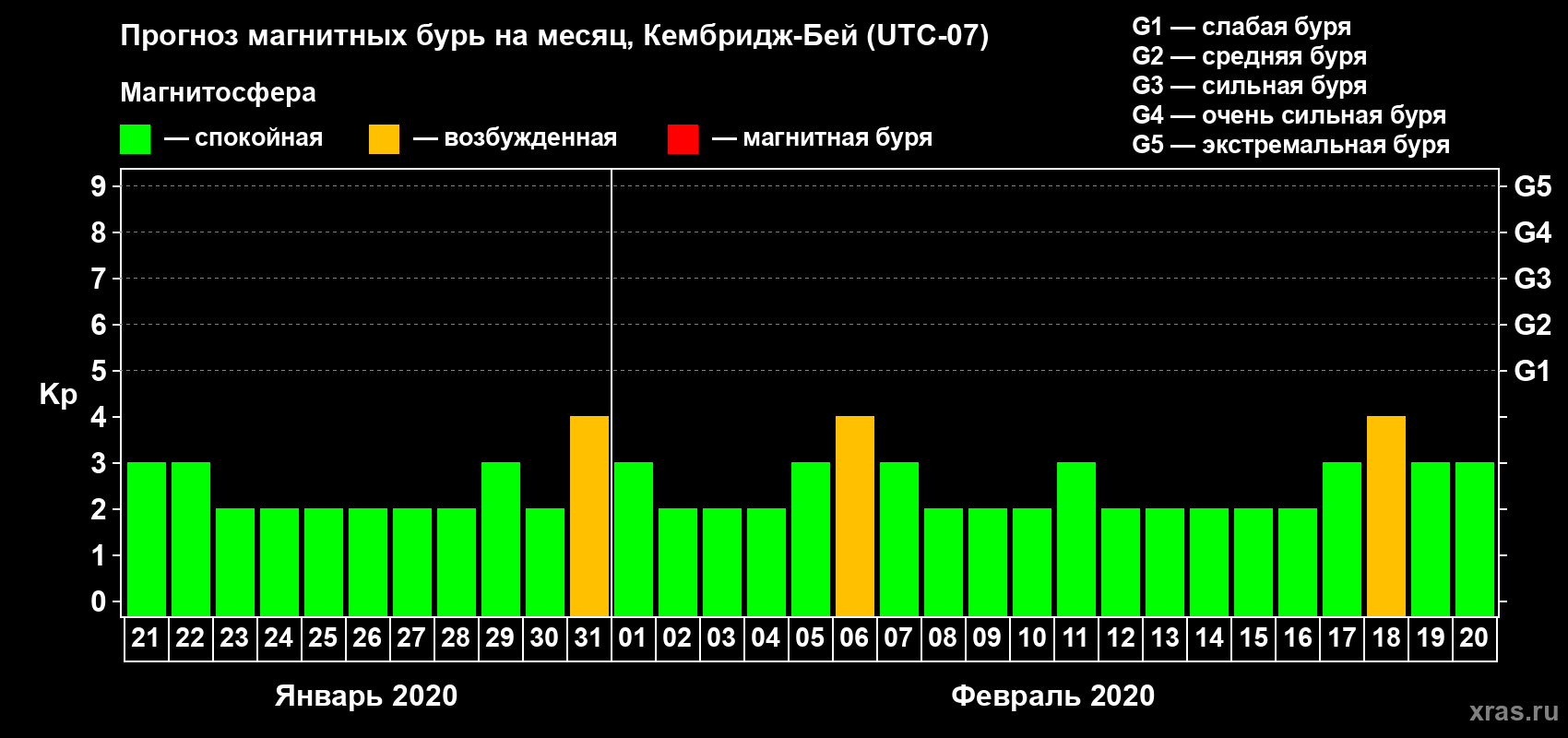 Прогноз магнитных бурь в Кембридж-Бейе — 21 января 2020 года