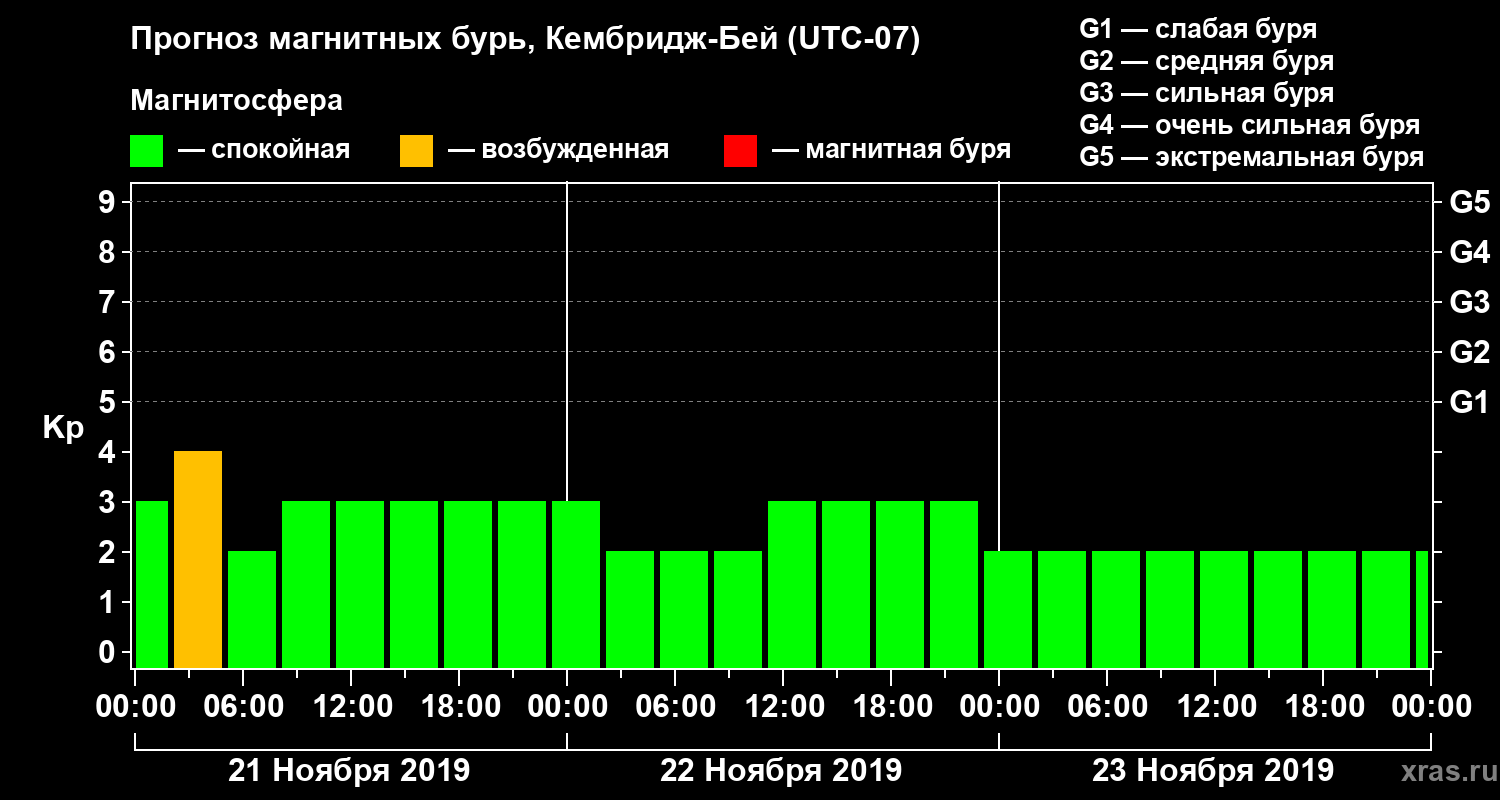 Прогноз магнитных бурь в Кембридж-Бейе — 21 ноября 2019 года