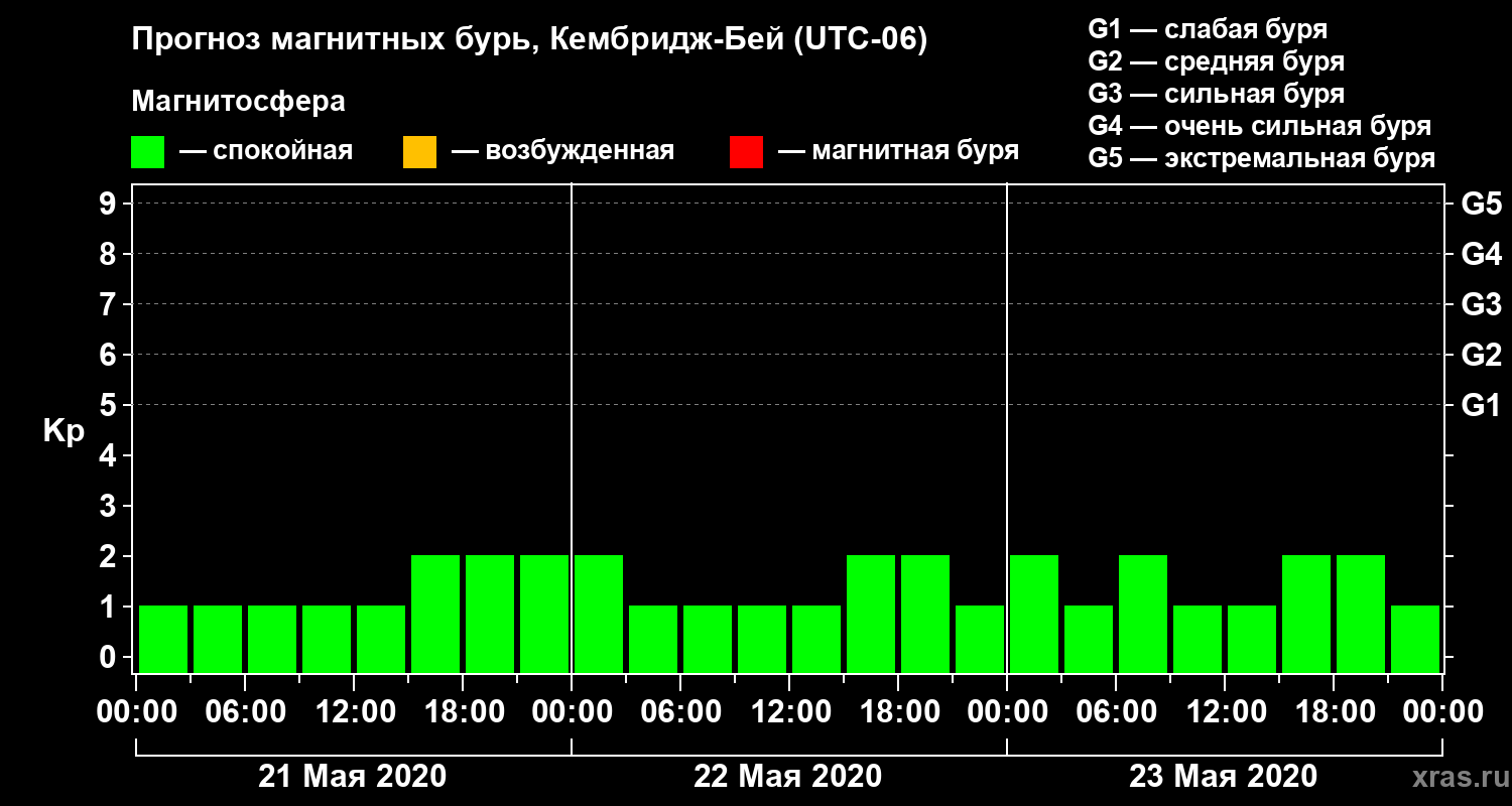 Прогноз магнитных бурь в Кембридж-Бейе — 21 мая 2020 года