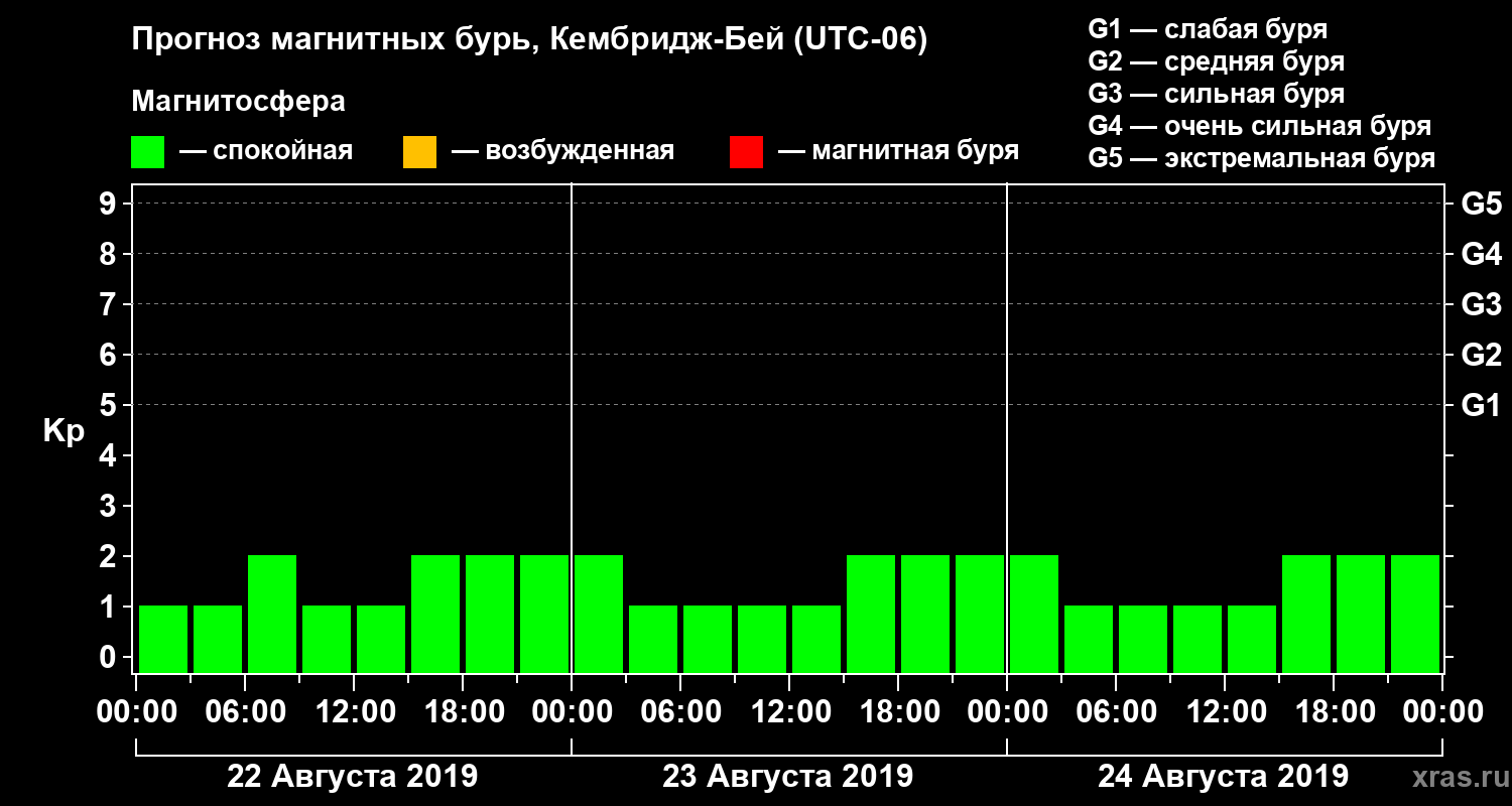 Прогноз магнитных бурь в Кембридж-Бейе — 22 августа 2019 года