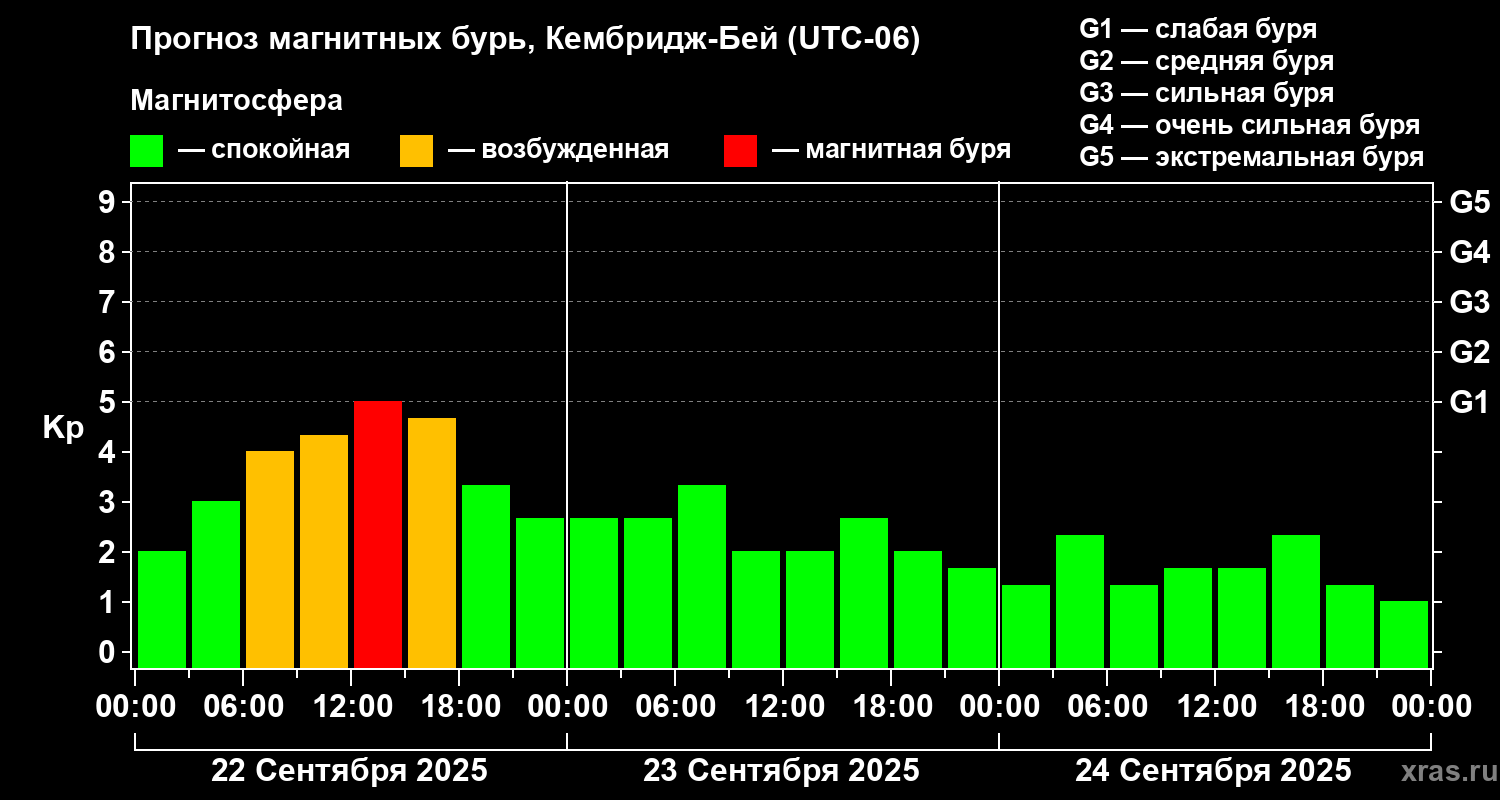 Прогноз магнитных бурь в Кембридж-Бейе — 22 сентября 2025 года