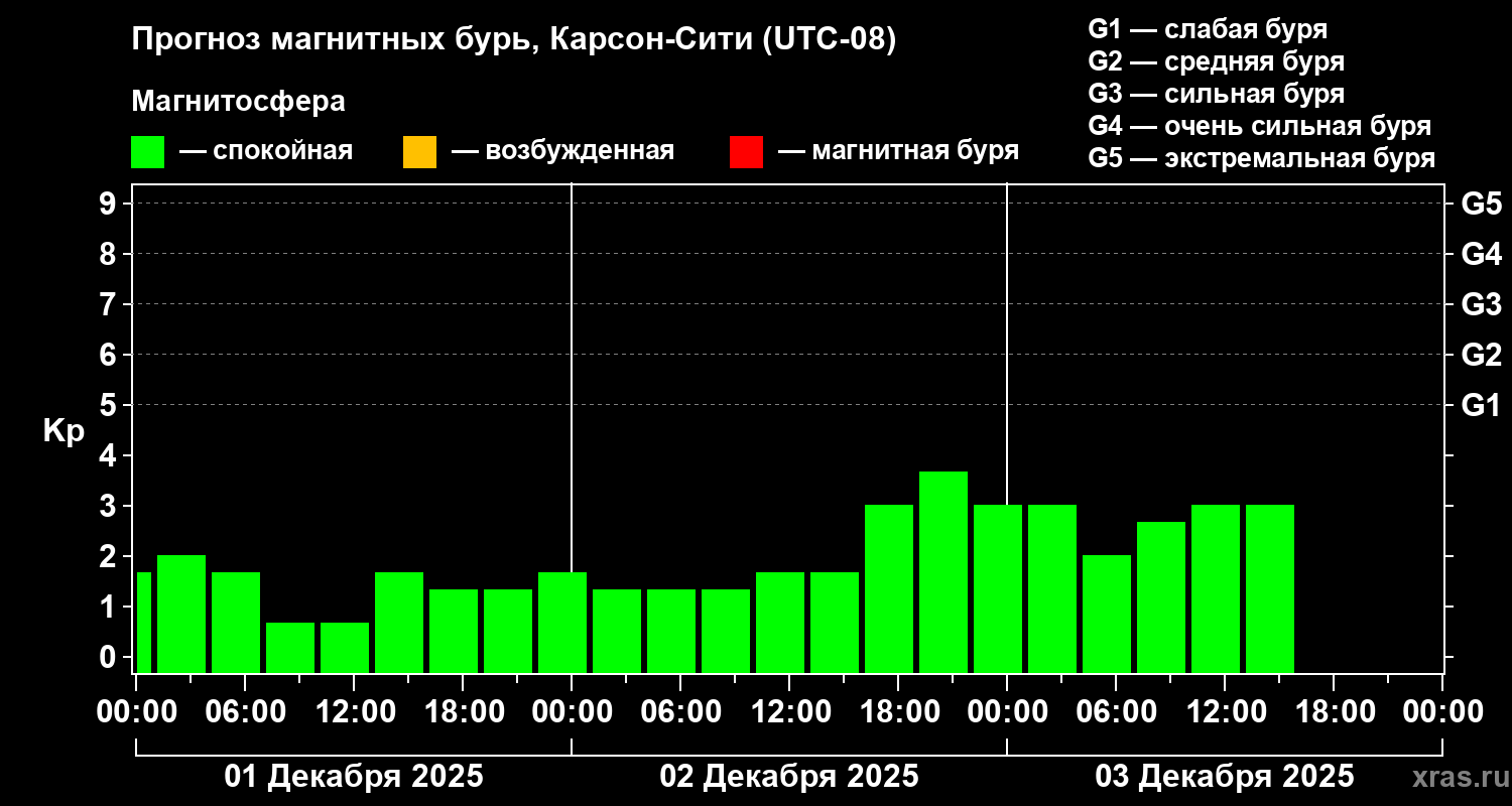 Прогноз магнитных бурь Карсон-Сити на 1 декабря 2025 года