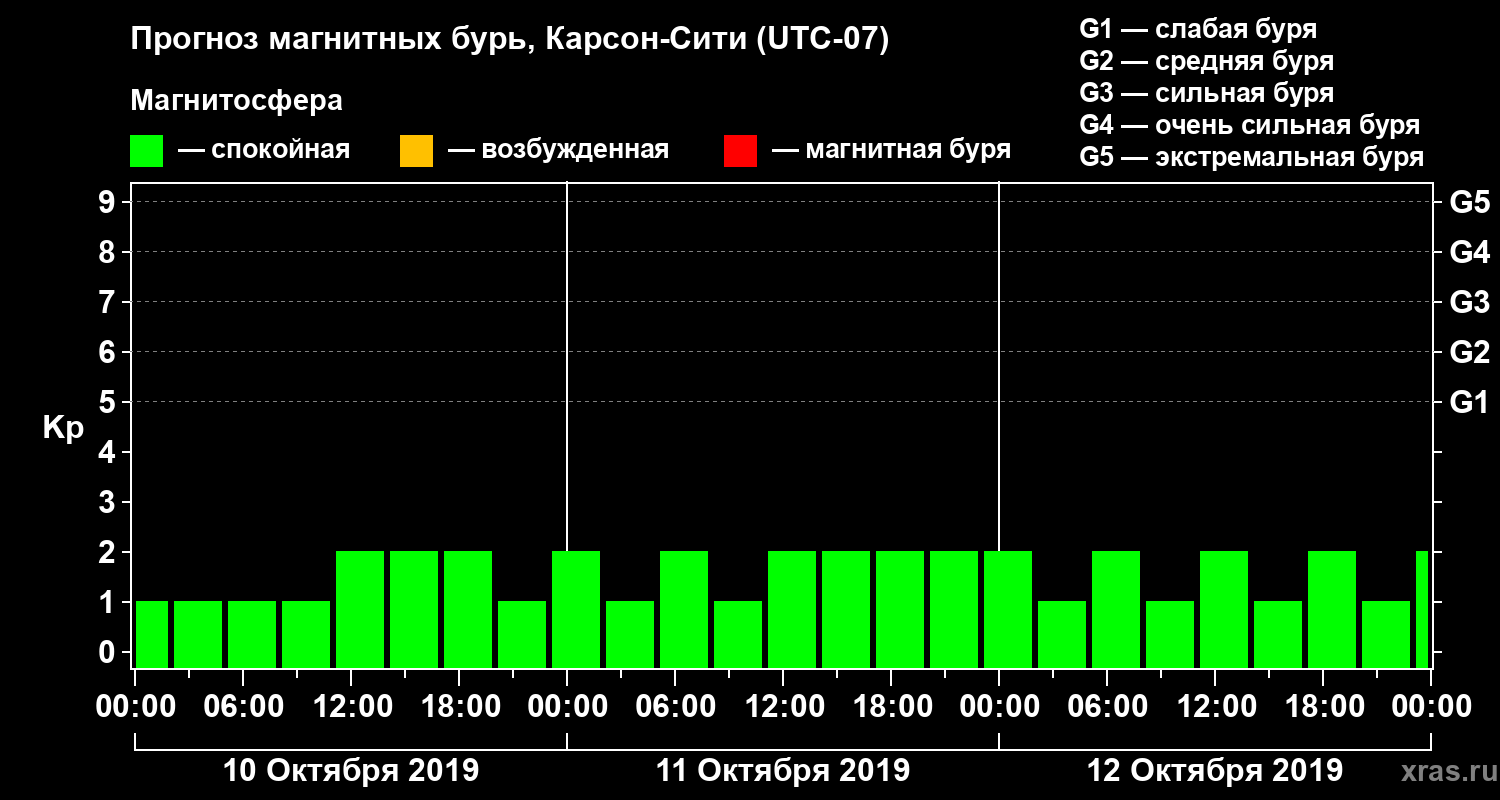Прогноз магнитных бурь Карсон-Сити — 10 октября 2019 года