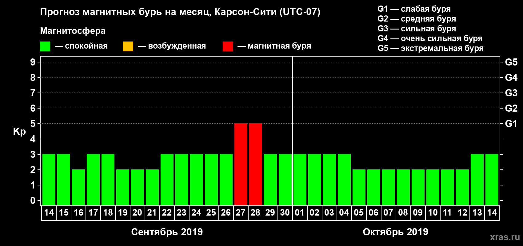 Прогноз магнитных бурь Карсон-Сити — 14 сентября 2019 года