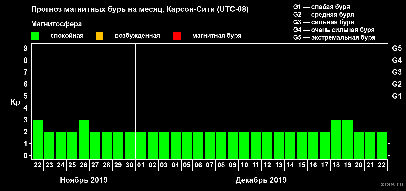 Прогноз магнитных бурь Карсон-Сити — 22 ноября 2019 года