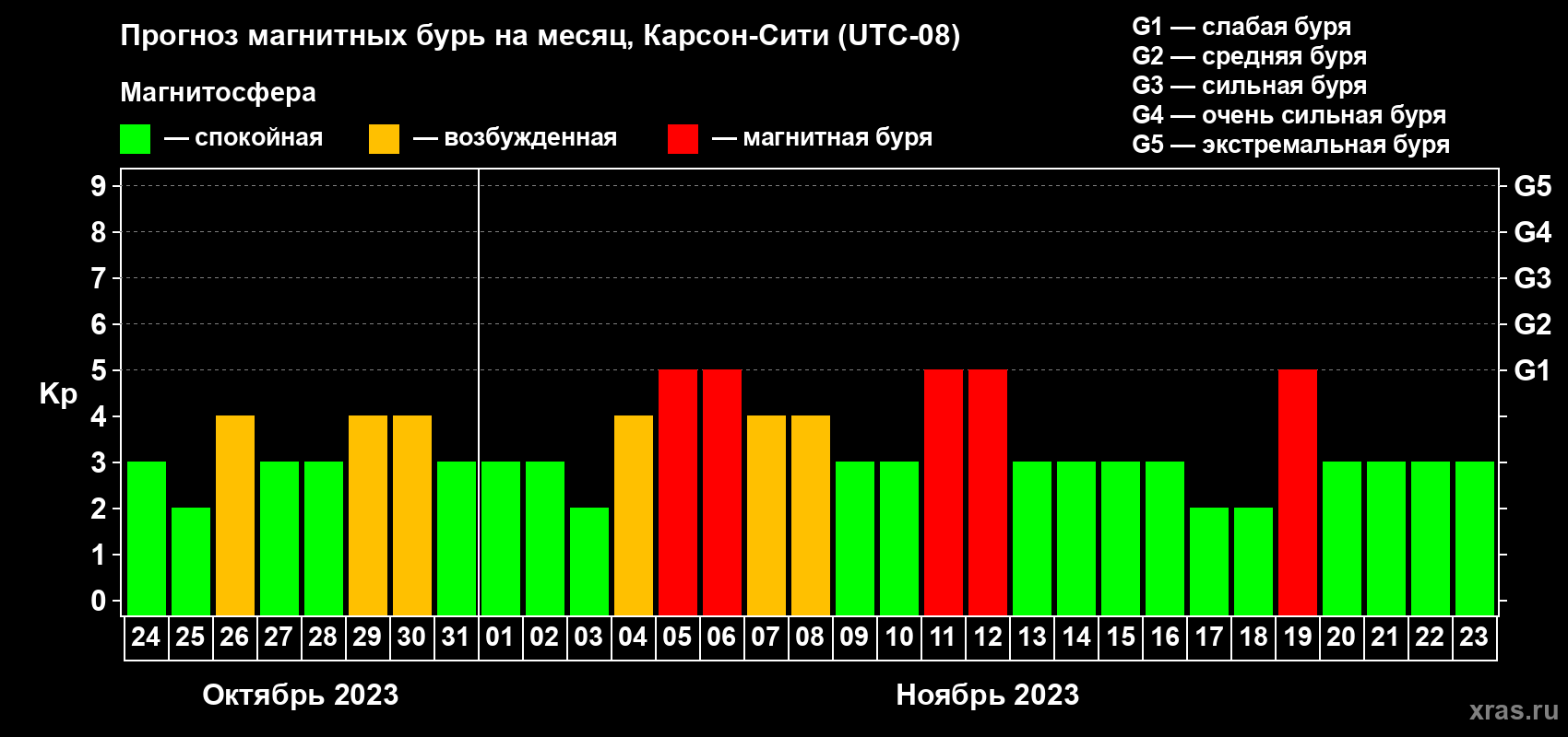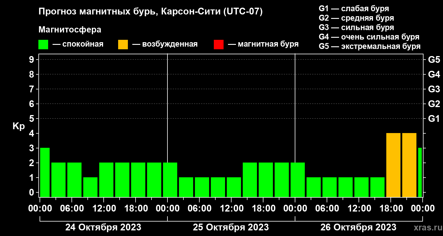 Прогноз магнитных бурь Карсон-Сити на 24 октября 2023 года