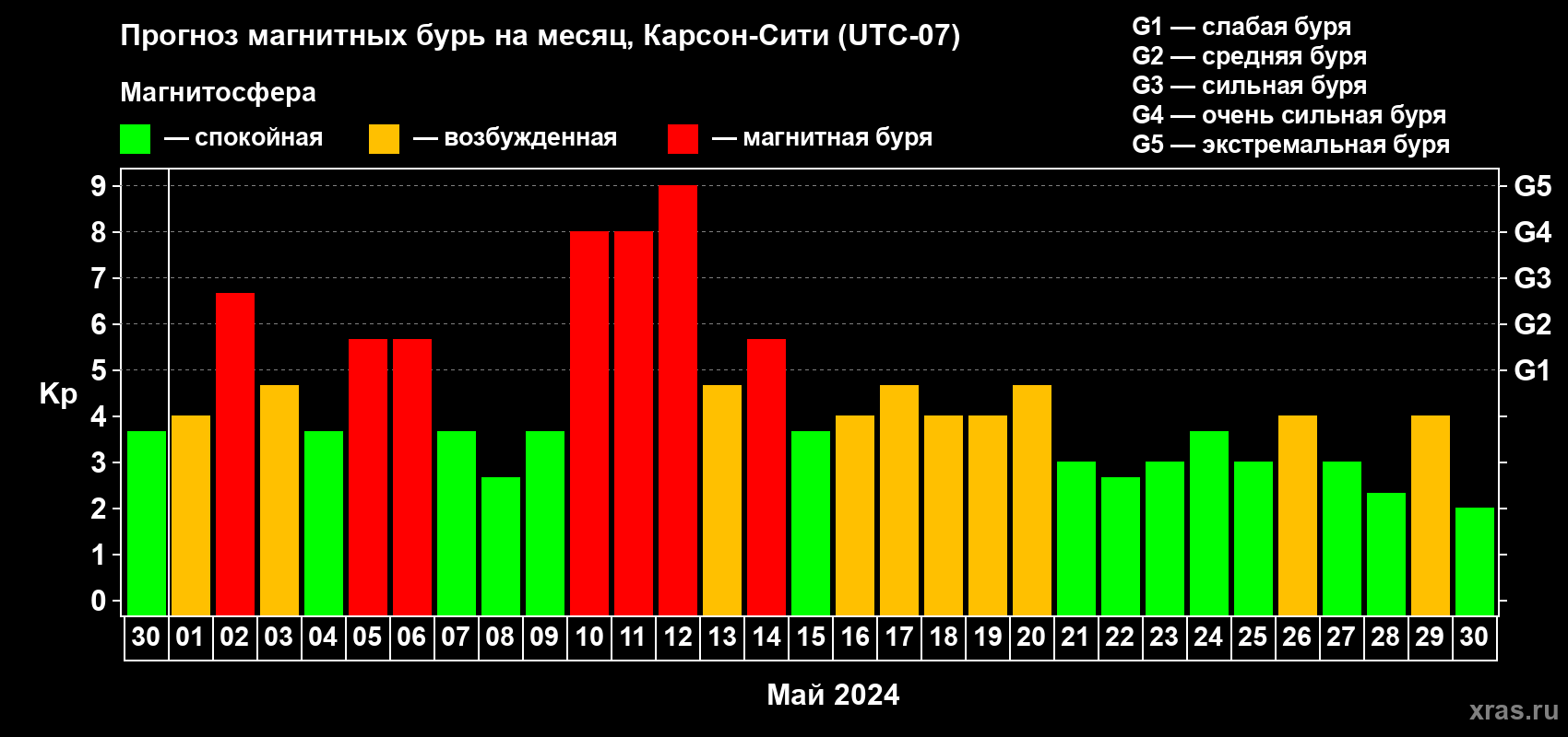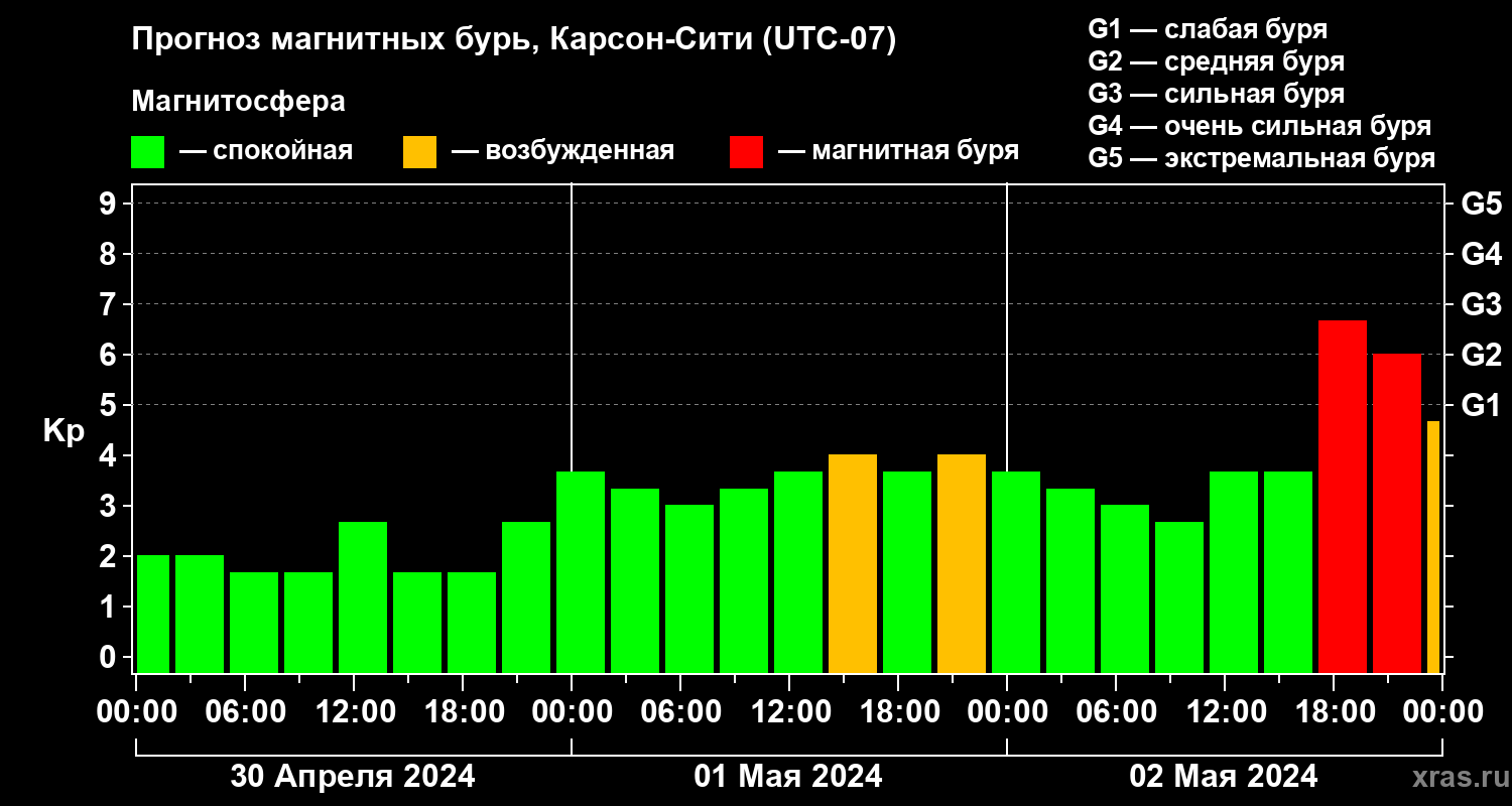Прогноз магнитных бурь Карсон-Сити на 30 апреля 2024 года