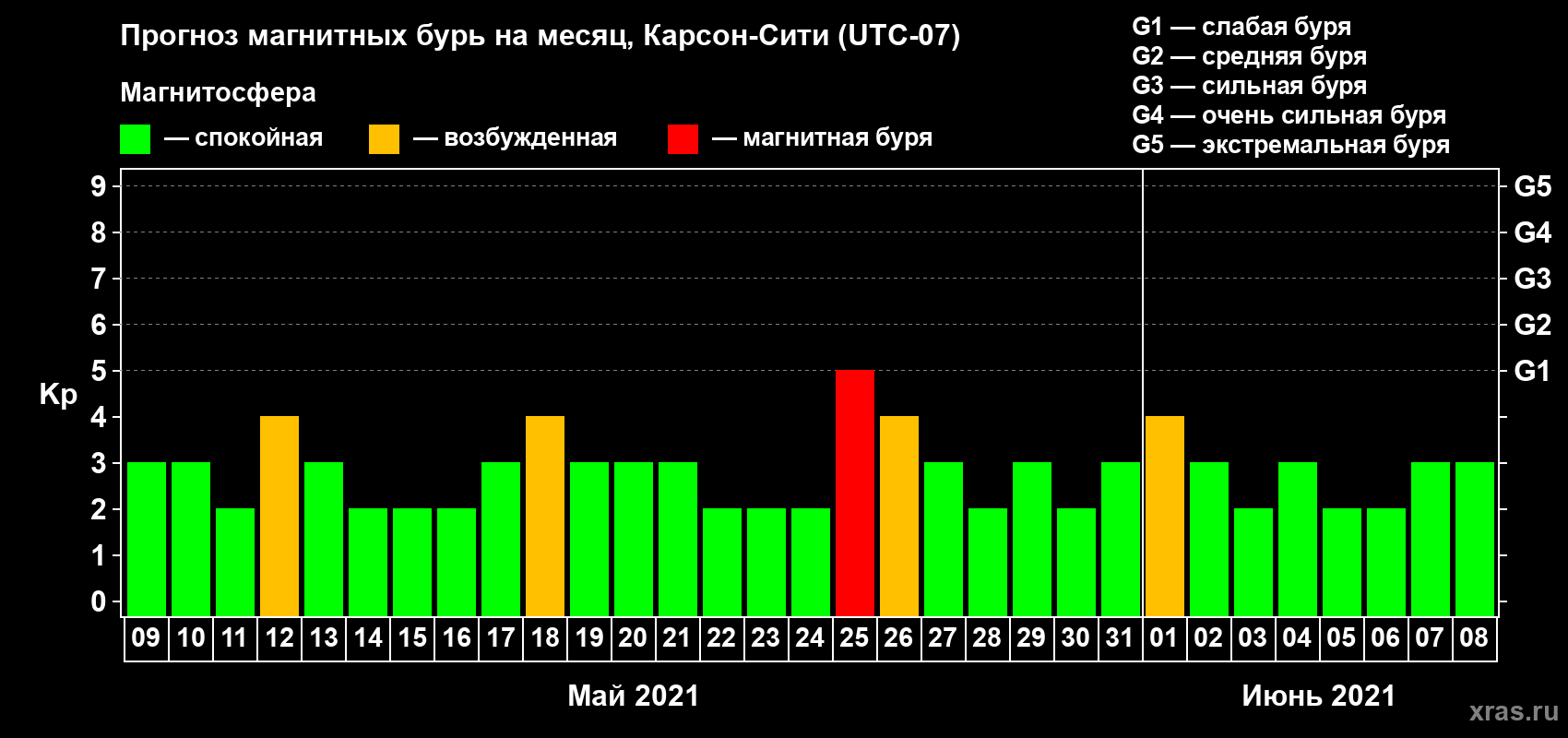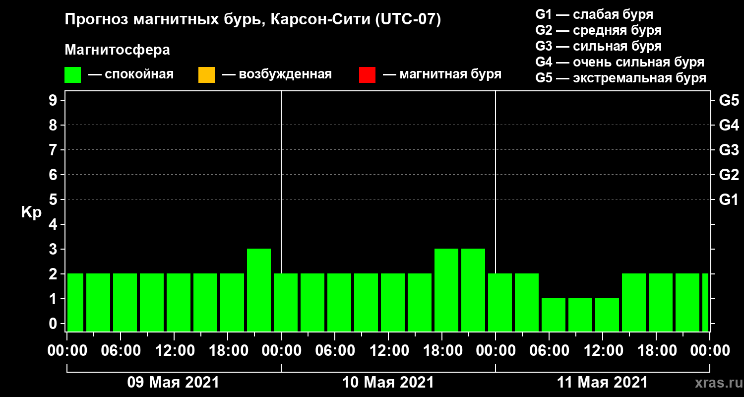 Прогноз магнитных бурь Карсон-Сити на 9 мая 2021 года