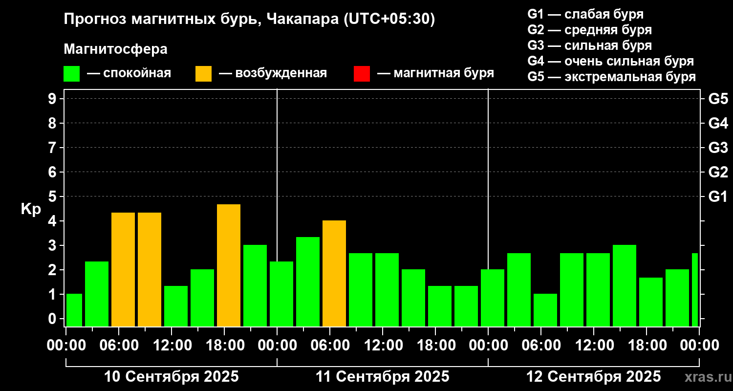 Прогноз магнитных бурь в Чакапаре — 10 сентября 2025 года