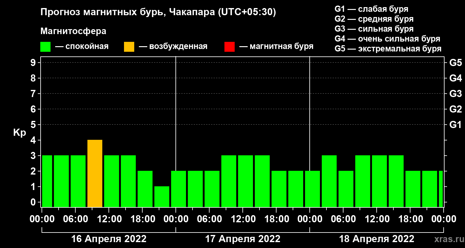 Прогноз магнитных бурь в Чакапаре — 16 апреля 2022 года