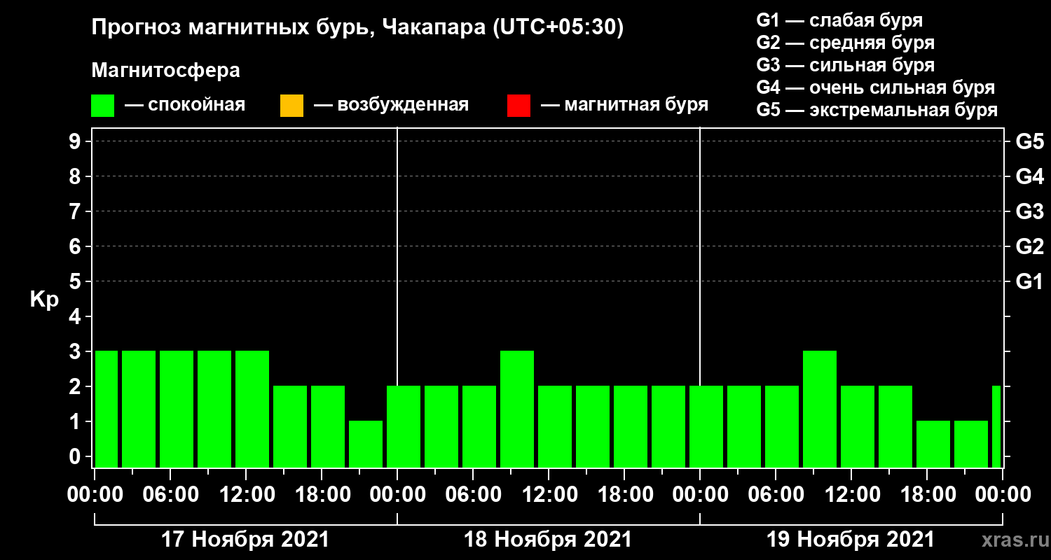 Прогноз магнитных бурь в Чакапаре — 17 ноября 2021 года