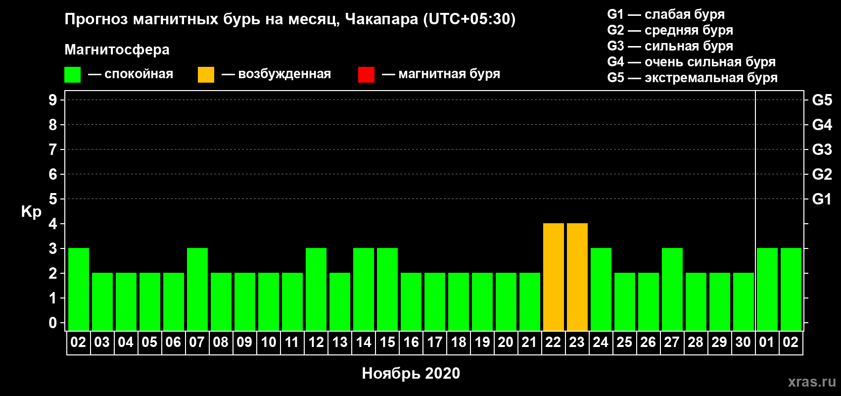 Прогноз магнитных бурь в Чакапаре — 2 ноября 2020 года
