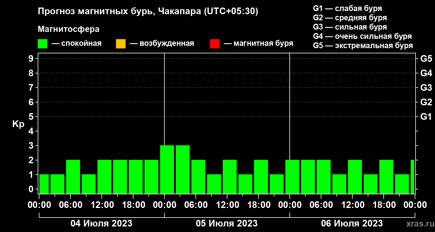 Прогноз магнитных бурь в Чакапаре — 4 июля 2023 года