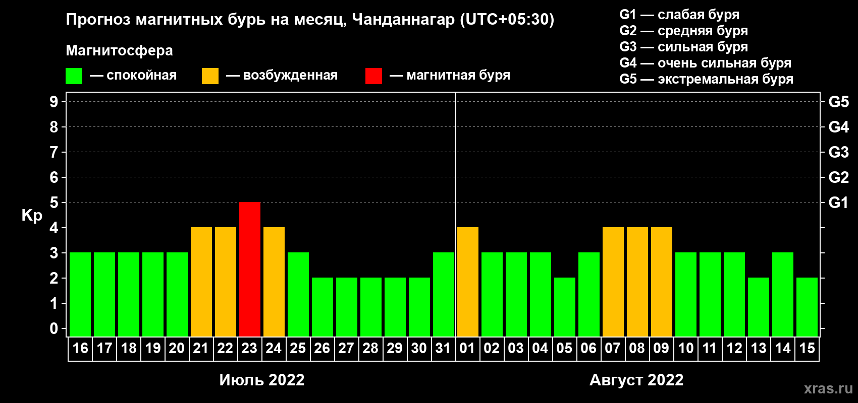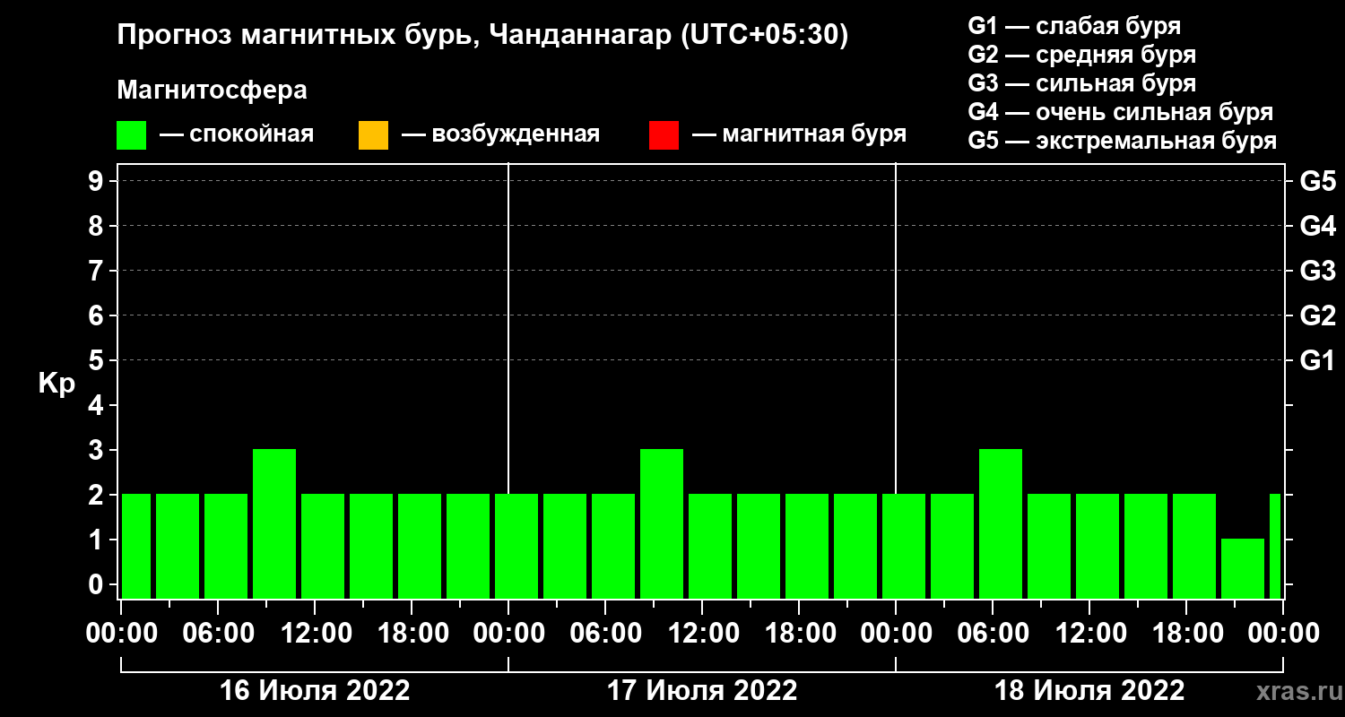Прогноз магнитных бурь в Чанданнагаре — 16 июля 2022 года