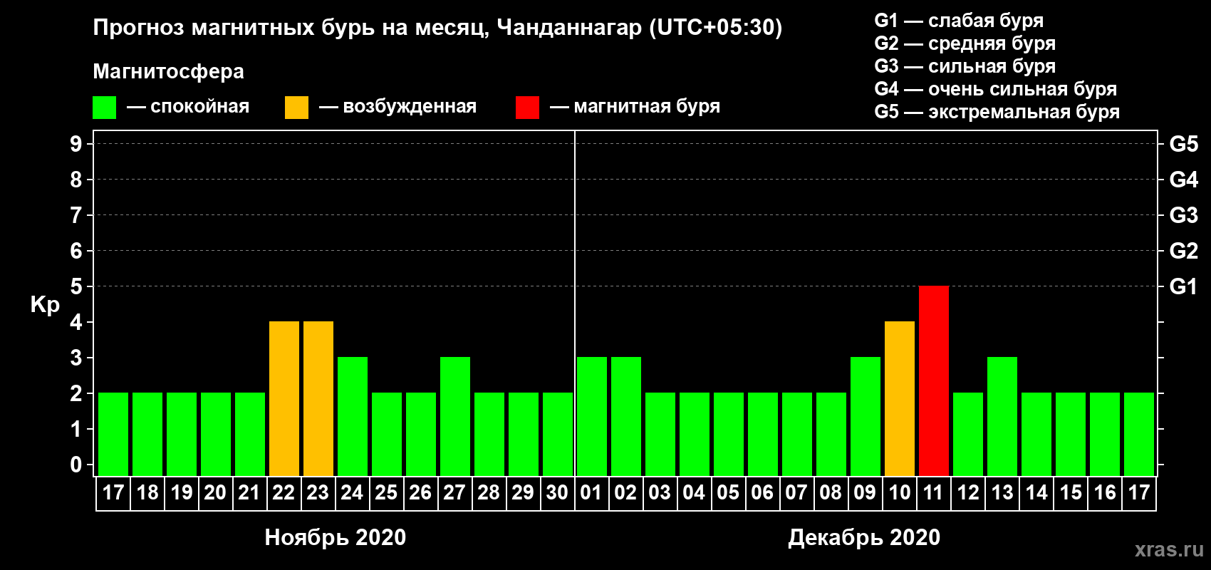 Прогноз магнитных бурь в Чанданнагаре — 17 ноября 2020 года
