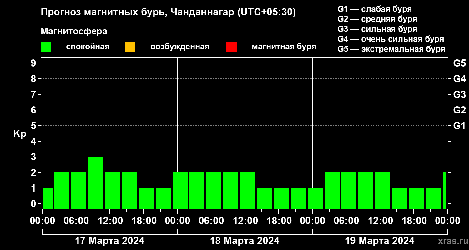 Прогноз магнитных бурь в Чанданнагаре — 17 марта 2024 года