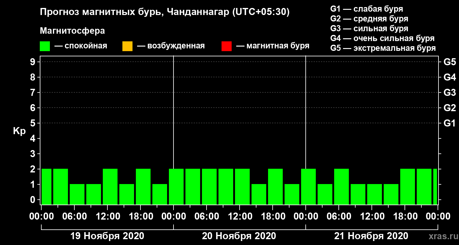 Прогноз магнитных бурь в Чанданнагаре — 19 ноября 2020 года
