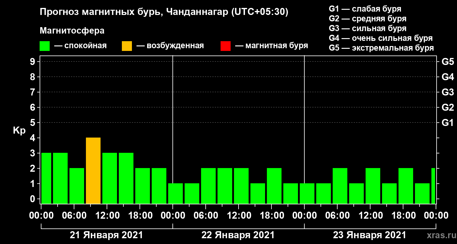 Прогноз магнитных бурь в Чанданнагаре — 21 января 2021 года