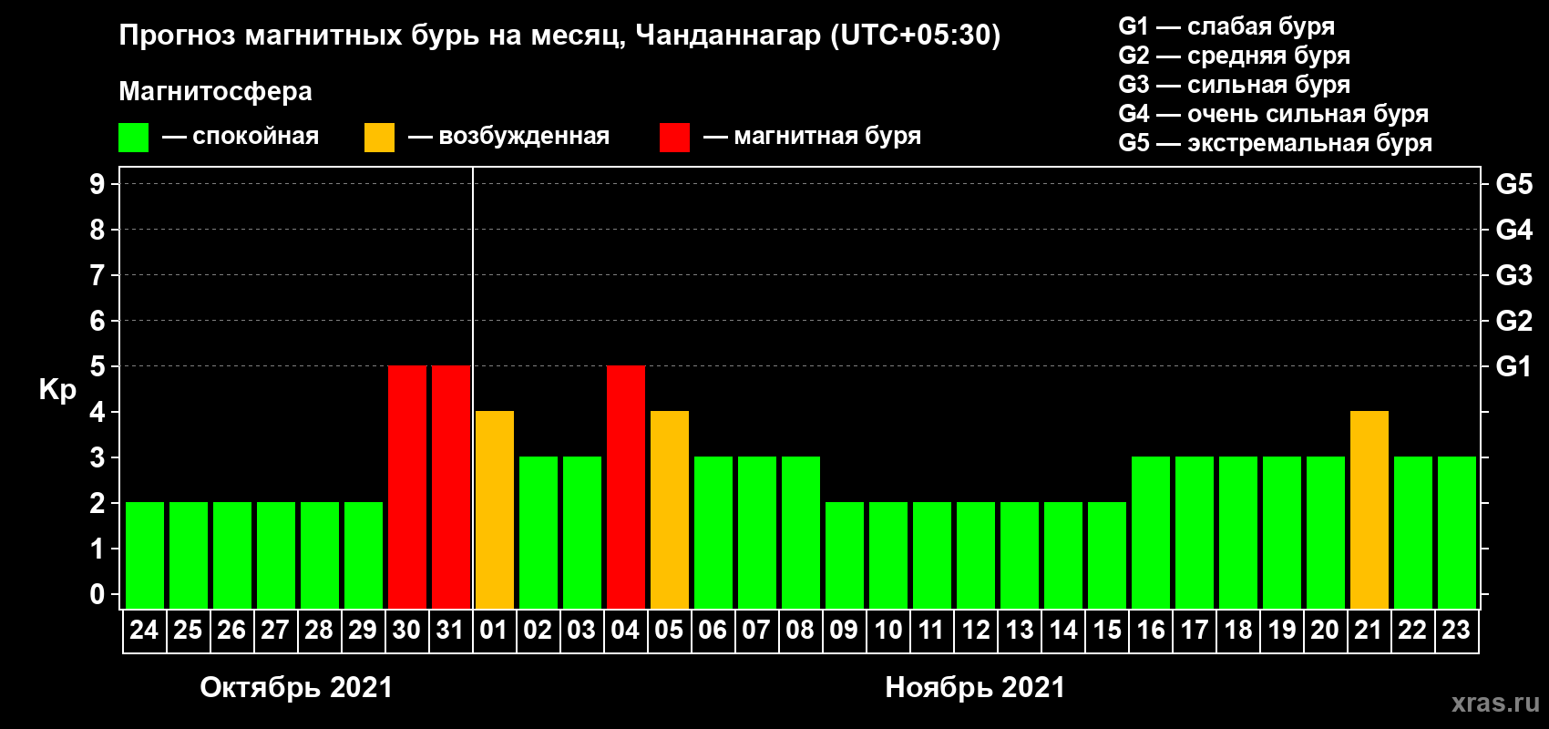 Прогноз магнитных бурь в Чанданнагаре — 24 октября 2021 года