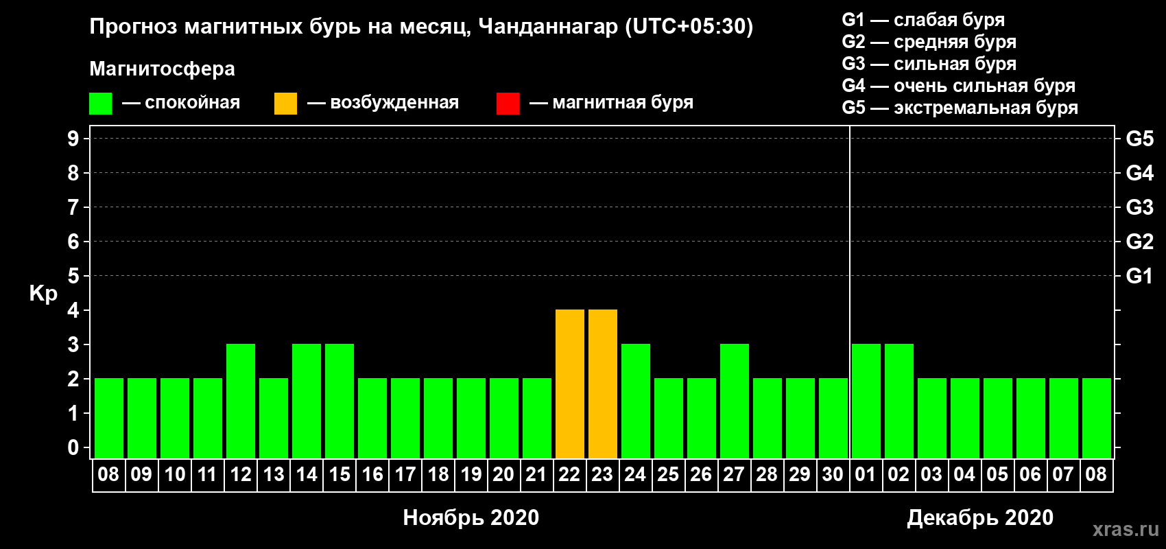 Прогноз магнитных бурь в Чанданнагаре — 8 ноября 2020 года
