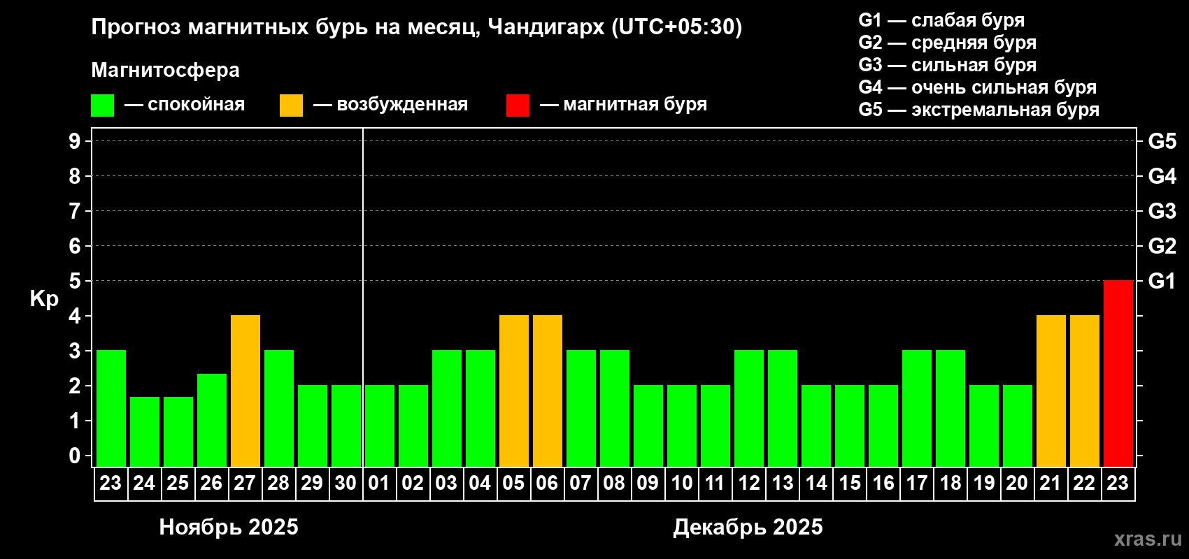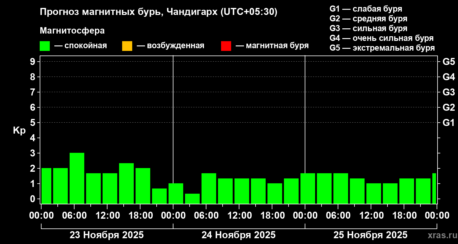 Прогноз магнитных бурь в Чандигархе — 23 ноября 2025 года