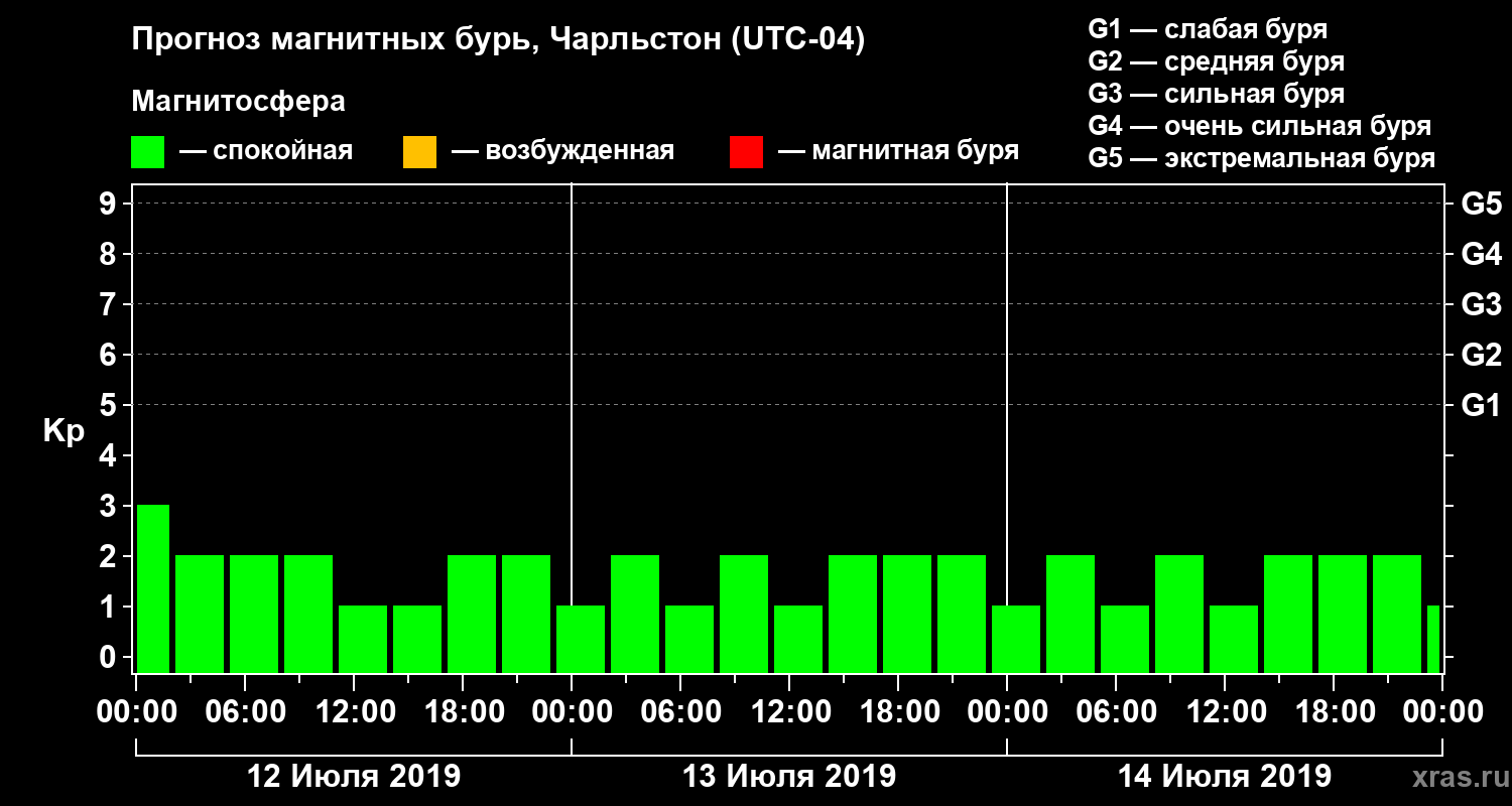 Прогноз магнитных бурь в Чарльстоне на 12 июля 2019 года